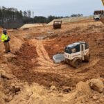 As requested, the site was visited by our AS Engineering and Consulting (ASEC) representative for the purpose of providing quality control inspection and testing services. Visual observation techniques were employed to verify compliance with project drawing/specifications, applicable codes, and materials submittals. The following observations were observed on site this day. <ul> <li>Upon arrival, the contractor was engaged in excavation using a Komatsu PC 360LC in the north of the project site close to the main road. Fill was being transported with two tandem-axled dump trucks near the parking areas and tennis courts, while dozing was performed with a Komatsu 39PXI. Compaction work was carried out using a CAT 563 E.</li> <li>Boulder fill was used in backfilling under the tennis court with proof-rolling used to verify stability in lieu of density testing.</li> </ul> Savannah Pipe Works: <div class="flex-shrink-0 flex flex-col relative items-end"> <div class="pt-0"> <div class="gizmo-bot-avatar flex h-8 w-8 items-center justify-center overflow-hidden rounded-full"> <div class="relative p-1 rounded-sm flex items-center justify-center bg-token-main-surface-primary text-token-text-primary h-8 w-8"> The contractor continues installation and backfilling work on manholes D6 and D7 using a Kobelco SK 350LC excavator. Following excavation, the backfill material was placed and compacted in one foot lifts. Compaction was achieved through a combination of manual compactors, Dynapac remote control compactor, and final compaction of the top layers with a HAMM R2 roller. During our site inspection, it was observed that the compaction process was performed in accordance with project requirements. Soil density was tested using a nuclear density gauge. The results obtained met the job specifications of 95% of a standard proctor. We appreciate the opportunity to be of service to you on this project. If you have any questions regarding this report, please feel free to contact us. </div> </div> </div> </div>