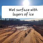 Picture depicting muddy and shining surface due to ice layer