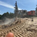 <p data-start="155" data-end="459">As requested, an ASEC representative visited the project site from 10:00 AM to 5:00 PM to provide quality control inspection and testing services. Visual observation techniques were employed to verify compliance with project drawings, specifications, applicable codes, and approved material submittals.</p> <p data-start="461" data-end="1270">The embankment work was in progress in Lots #7, 8, 9, 10, and 11. Approximately 2 ft of rock-and-dirt fill was placed in the lots. All procedures related to material placement was observed. Larger rocks (greater than 12 inches) were instructed to be broken into smaller pieces before placement. The material was compacted using the 815K roller, after which a proof-roll was performed with a loaded truck available on site. No significant movement or instability of the embankment was observed. The approximate depths after this layer were recorded as follows: Lot #7 – 6 ft, Lot #8 – 10 ft, Lot #9 – 10 ft, Lot #10 – 8.5 ft, and Lot #11 – 7 ft. Following this, a new layer was started by the contractor. It was recommended not to use rocks larger than 4 inches in Lot #7 (6 ft to the final layer).</p> <p data-start="1272" data-end="1474">Additionally, re-compaction was conducted in Lots #17 and 18 using both the 815K roller and a 16-ton roller. The lots were retested, and the re-test results were recorded in the field density reports.</p> <p data-start="1476" data-end="1783">Drilling operations were also carried out by Advance Explosive Company on the west side of Lot #25 toward Manhole #10. Holes were drilled at approximately 7 ft by 7 ft spacing using a 3.5-inch bit. Random depth checks were performed and confirmed against the drill operator’s log sheet. Results indicated:</p> <ul data-start="1784" data-end="2175"> <li data-start="1784" data-end="1903"> <p data-start="1786" data-end="1903">Drill #1 completed nine holes at a depth of 18 ft and fifteen holes at 14 ft, with rock encountered between 0–3 ft.</p> </li> <li data-start="1904" data-end="2044"> <p data-start="1906" data-end="2044">Drill #2 completed eight holes at a depth of 24 ft, six holes at 14 ft, and twenty holes at 14 ft, with rock encountered between 1–3 ft.</p> </li> <li data-start="2045" data-end="2175"> <p data-start="2047" data-end="2175">Drill #3 completed ten holes at 24 ft, fifteen holes at 18 ft, and nine holes at 14 ft, with rock encountered between 6–11 ft.</p> </li> </ul> <p data-start="2177" data-end="2336">The equipment in operation for the day included three drilling machines, one 815K roller, one sheepsfoot roller, two dozers, four trucks, and two excavators.</p> <p data-start="2338" data-end="2583">Overall, the day’s work was completed without major issues. We appreciate the opportunity to provide our services on this project, and should there be any questions regarding this report, please feel free to contact us.</p>