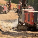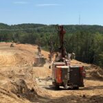 As requested, an ASEC representative visited the project site from 09:30 AM to 06:30 PM to provide quality control inspection and testing services. Visual observation techniques were employed to verify compliance with project drawings, specifications, applicable codes, and approved material submittals. The drilling work between Manhole 9A and A10 was in progress by Advance Explosive contractor. Three drilling machines were engaged in the operation. The holes were drilled at approximately 7 ft × 7 ft spacing using a 3.5-inch bit. Depth checks were randomly performed and verified against the drill operator’s log sheet. A total of <strong>115 holes at a depth of 30 ft</strong>, <strong>28 holes at a depth of 20 ft</strong>, <strong>3 holes at 25 ft</strong>, <strong>3 holes at 26 ft</strong>, <strong>3 holes at 27 ft</strong>, <strong>3 holes at 28 ft</strong>, <strong>3 holes at 29 ft</strong>, and <strong>6 holes at 32 ft</strong> were drilled. The rock was encountered at depths ranging from 2 ft to 12 ft. The embankment work was ongoing in Lots #9, #10, and #11, at approximate elevations ranging from -4 ft to finish grade. Three nuclear gauge tests were performed in Lots #10, #11, and #12. One crew of the embankment contractor was working between Stations 42+00 and 44+00. Four lifts, each 12 inches thick, were placed and compacted. Approximately three additional lifts were planned for placement the following day. We appreciate the opportunity to provide our services on this project, and should there be any questions regarding this report, please feel free to contact us.