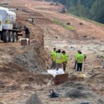 As requested, an ASEC representative visited the project site from 09:30 AM to 06:30 PM to provide quality control inspection and testing services. Visual observation techniques were employed to verify compliance with project drawings, specifications, applicable codes, and approved material submittals. The blasting work between Manhole A10 and A11 was in progress by the Advance Explosive contractor. The blasting material was provided by powderman Company. An ammonium nitrate and water emulsion was used for the blasting. An average of 74 lbs of blasting material was used in each hole. Detonators with 25 ms and 42 ms wires were used for blasting. The holes were filled with gravel as per the specifications. Safety measures were followed, and the blast was performed at around 12:00 PM. The drilling work between Manhole A 11 and A12 was in progress by the Advance Explosive contractor. Three drilling machines were engaged in the operation. The holes were drilled at approximately 7 ft × 7 ft spacing using a 3.5-inch bit. Depth checks were randomly performed and verified against the drill operator’s log sheet. A total of <strong>66 holes at a depth of 30ft</strong>, <strong>7 holes at a depth of 32 ft</strong>, and <strong>12 holes at a depth of 34 ft</strong> were drilled. The rock was encountered at depths ranging from 0 ft to 11 ft. We appreciate the opportunity to provide our services on this project, and should there be any questions regarding this report, please feel free to contact us.