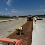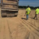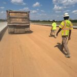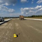 <p data-start="101" data-end="557">At the request of the client’s representative, AS ENGINEERING AND CONSULTING, LLC (ASEC) representative Amin Azimi visited the job site to observe the contractor’s work activities from a quality assurance standpoint. The purpose of the visit was to verify compliance with project drawings, specifications, applicable codes, and approved material submittals, as well as to conduct quality control testing in accordance with project requirements.</p> <p data-start="559" data-end="1104">During this shift, work was in progress on Phases 1B and 1C of Runway 3R-21L. A proof-roll was performed on the subgrade in Phase 1B between STA 1015+00 to 1058+63 and in Phase 1C from STA 1058+63 to 1069+81 using a fully loaded tandem axle truck. Multiple passes were performed across the subgrade. Some yielding and deflection were observed in some areas, particularly in one pass from STA 1061+00 to 1067+03 near the east edge of the shoulder. It was recommended that the affected areas be treated with 30 to 35 pounds per square yard of soil cement.</p> <p data-start="1106" data-end="1472">A second proof-rolling was also performed on the GAB (graded aggregate base) at finished grade for Phase 1B between STA 1047+63 to 1055+00. Some yielding and deflection were observed in five locations with approximate dimensions of (50’ x 12’), (30’ x 6’), (40’ x 19’), (29’ x 6’), and (96’ x 6’). It was recommended that these areas be undercut by 1 foot and backfilled with GAB.</p> <p data-start="1474" data-end="1723">The proof-rolling activities were jointly observed by the undersigned (Amin Azimi), Christian (QC Representative from Nova), and Daug (Representative from Atlanta Paving). The contractor subsequently placed 8 inches of GAB in Phase 1B.</p> <p data-start="1725" data-end="2060">Compaction testing was performed on the finished grade GAB in Phase 1B from STA 1047+63 to 1055+00 using a Troxler nuclear density gauge. The test results indicated that most of the compacted material met the project requirement of achieving a minimum of 100% of the maximum dry density, in accordance with ASTM D1557 (Modified Proctor).</p> <p data-start="2062" data-end="2269">We appreciate the opportunity to be of service on this project. Should you have any questions regarding this report, please do not hesitate to contact us. We would be pleased to discuss our findings further.</p>