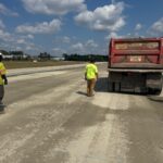 At the request of the client’s representative, AS ENGINEERING AND CONSULTING, LLC (ASEC) representative Amin Azimi visited the job site to observe the contractor’s work activities from a quality assurance standpoint. The purpose of the visit was to verify compliance with the project drawings, specifications, applicable codes, and approved material submittals, as well as to perform quality control testing in accordance with project requirements. During this shift, work was in progress on Phases 1D and phase 1E Taxiway A. A proof-roll was performed on the finished grade for graded aggregate base (GAB) placement in Phases 1D, between STA 1072+81 and STA 1080+03. A fully loaded tandem axle truck was used for the proof-rolling. Multiple passes were made across the finished grade GAB, and no severe yielding or deflection was observed during this portion of the activity. The proof-rolling activities were jointly observed by the undersigned (Amin Azimi), and Christian (QA Representative from Nova), and Tony (CWM representative). In addition, the contractor placed 8 inches of GAB in phase 1E from Taxiway A. Compaction testing was performed on the finished grade GAB in Phase 1D from STA 1072+81 to STA 1080+03 using a Troxler nuclear density gauge. The results indicated that most of the compacted material met the project requirement of achieving a minimum of 100% of the maximum dry density, in accordance with ASTM D1557 (Modified Proctor). We appreciate the opportunity to support this project. Should you have any questions regarding this report, please do not hesitate to contact us. We would be pleased to discuss our findings further.