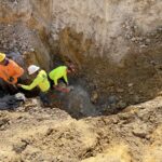 As requested, the site was visited by our AS Engineering and Consulting (ASEC) representative for the purpose of providing quality control inspection and testing services. Visual observation techniques were employed to verify compliance with project drawing/specifications, applicable codes, and materials submittals. The following observations were observed on site this day. <h3 data-start="443" data-end="496">Subject: Observation of Burrito Wrap Installation</h3> <p data-start="498" data-end="687">A request was made to observe the installation of burrito wraps (French drains) at the above-referenced site. Upon arrival, a site meeting was held with Eric, the foreman from Carmichael Construction.</p> <p data-start="689" data-end="1026">It was determined during the meeting that the <strong data-start="735" data-end="834">first burrito wrap installation had been completed prior to the site visit and was not observed</strong>. The focus of the current visit was to observe the start of the <strong data-start="899" data-end="935">second burrito wrap installation</strong>, which will span from <strong data-start="959" data-end="975">STC1 to STC3</strong>, with an approximate total length of <strong data-start="1013" data-end="1025">180 feet</strong>.</p> <p data-start="1028" data-end="1187">A <strong data-start="1030" data-end="1051">temporary manhole</strong> had been installed at the northern end of the installation area to allow for future pumping of water if necessary (see attached photo).</p> <h3 data-start="1189" data-end="1208">Equipment Used:</h3> <ul data-start="1209" data-end="1307"> <li data-start="1209" data-end="1238"> <p data-start="1211" data-end="1238"><strong data-start="1211" data-end="1238">Komatsu PC390 Excavator</strong></p> </li> <li data-start="1239" data-end="1270"> <p data-start="1241" data-end="1270"><strong data-start="1241" data-end="1270">Caterpillar 323 Excavator</strong></p> </li> <li data-start="1271" data-end="1307"> <p data-start="1273" data-end="1307"><strong data-start="1273" data-end="1307">Caterpillar 938 Wheeled Loader</strong></p> </li> </ul> <h3 data-start="1309" data-end="1328">Work Performed:</h3> <ul data-start="1329" data-end="1796"> <li data-start="1329" data-end="1426"> <p data-start="1331" data-end="1426">A ditch was excavated from <strong data-start="1358" data-end="1376">south to north</strong>, aligned with the temporary manhole (see photos).</p> </li> <li data-start="1427" data-end="1507"> <p data-start="1429" data-end="1507">The work observed on this day was located beneath a <strong data-start="1481" data-end="1506">future detention pond</strong>.</p> </li> <li data-start="1508" data-end="1586"> <p data-start="1510" data-end="1586">A <strong data-start="1512" data-end="1550">geotextile fabric</strong> was placed in the excavated trench.</p> </li> <li data-start="1587" data-end="1648"> <p data-start="1589" data-end="1648">Approximately <strong data-start="1603" data-end="1621">3 feet of rock</strong> was added over the fabric.</p> </li> <li data-start="1649" data-end="1796"> <p data-start="1651" data-end="1796">A <strong data-start="1653" data-end="1687">solid corrugated drainage pipe</strong> was installed in the center of the trench and connected at the end to the <strong data-start="1762" data-end="1783">temporary manhole</strong> (see photo).</p> </li> </ul> <h3 data-start="1798" data-end="1808">Notes:</h3> <ul data-start="1809" data-end="2030"> <li data-start="1809" data-end="1890"> <p data-start="1811" data-end="1890">No additional observations were made following this initial installation phase.</p> </li> <li data-start="1891" data-end="2030"> <p data-start="1893" data-end="2030"><strong data-start="1893" data-end="1968">Further work will be required to complete the burrito wrap installation</strong>, and additional site visits may be necessary for observation.</p> </li> </ul> We appreciate the opportunity to be of service to you on this project. If you have any questions regarding this report, please feel free to contact us. We will be more than happy to discuss it with you.