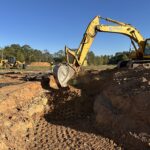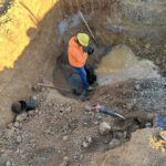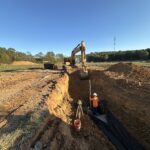 As requested, the site was visited by our AS Engineering and Consulting (ASEC) representative for the purpose of providing quality control inspection and testing services. Visual observation techniques were employed to verify compliance with project drawing/specifications, applicable codes, and materials submittals. The following observations were observed on site this day. Excavation and installation continued today at the Cassville Road tract for the French drain (“burrito wrap”) project. At Point B5, the crew cut into the existing pipe and installed a new T-section connection leading toward B5.2. A short piece of pipe was cut and attached to the T-section to achieve the required angle for the new line direction. Excavation, pipe installation, and backfilling operations were completed along the section from B5 to B5.2 and B5.3. Following completion of that section, the crew moved to Point B4, where the existing pipe was cut to install another T-joint in accordance with the updated design plan and installed pipes. We appreciate the opportunity to be of service to you on this project. If you have any questions regarding this report, please feel free to contact us. We will be more than happy to discuss it with you.