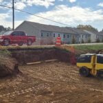 As requested, the site was visited by our AS Engineering and Consulting (ASEC) representative for the purpose of providing quality control inspection and testing services. Visual observation techniques were employed to verify compliance with project drawing/specifications, applicable codes, and materials submittals. The following observations were observed on site this day. Our ASEC representative was on site for the observation/testing of the placement of fill/backfill. The contractor continued placement of fill in approximately 6-inch lifts along the back and edge of Lots #3 and #4. ASEC performed density testing approximately every 2 feet and provided all test results to the contractor. ASEC watched as loaded dump trucks rolled across the compacted lifts. There were no signs of severe pumping or rutting. ASEC performed a field proctor for the structural fill being excavated from the pond area and placed along these lots. The field proctor showed an approximately maximum dry density of 100.0 pcf at approximately 18.5% optimum moisture content. ASEC is confirming this with a lab proctor for this same material. The pipe crew started boring under Philadelphia Road to the other side of the street. During this time, ASEC noticed there was a large void under the gas main that runs alongside the road in the deceleration lane. ASEC pointed this out to the pipe crew and recommended that they fill this void before backfilling the deceleration lane. The pipe crew agreed and filled the void. Density testing was performed around the BC1 and BC2 structures as the contractor backfilled this area. All test results were provided to the contractor. We appreciate the opportunity to be of service to you on this project. If you have any questions regarding this report, please feel free to contact us. We will be more than happy to discuss it with you.