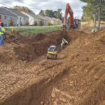 As requested, the site was visited by our AS Engineering and Consulting (ASEC) representative for the purpose of providing quality control inspection and testing services. Visual observation techniques were employed to verify compliance with project drawing/specifications, applicable codes, and materials submittals. The following observations were observed on site this day. Our ASEC representative was on site for the observation/testing of the placement of fill/backfill. The contractor continued placing structural fill along Lots #1 through #4 slope and edge of building pads. The contractor is benching into the natural ground as they work their way up the natural slope. Lifts are being placed in approximately 8 inches to 12 inches in thickness and compacted with an 815 sheeps-foot roller. As the loaded trucks roll across the lifts, ASEC is watching for pumping/rutting and checking for stability of the lift. There have been no signs of severe pumping/rutting, and the lifts appear to be stable. Density testing was performed approximately every 2 feet. Fill was excavated from the pond located from the front of the site by deceleration lane. All topsoil is placed along the bank in the pond (greenspace). ASEC reviewed site plans with the contractor. ASEC was informed the large open area to the right of the main pond (front of site by deceleration lane) is a commercial lot area. ASEC will perform density testing in this area as structural fill is placed. The contractor placed structures BC4.1 and BC4.2 in the deceleration lane and began backfilling. Once the contractor backfilled approximately 2 feet over the pipeline, ASEC began density testing approximately every 2 feet. All test results were provided to the contractor, and any failing tests were addressed. We appreciate the opportunity to be of service to you on this project. If you have any questions regarding this report, please feel free to contact us. We will be more than happy to discuss it with you.