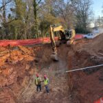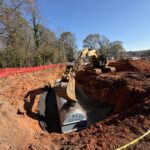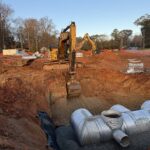 As requested, the site was visited by our AS Engineering and Consulting (ASEC) representative for the purpose of providing quality control inspection and testing services. Visual observation techniques were employed to verify compliance with project drawing/specifications, applicable codes, and materials submittals. The following observations were observed on site this day. <p data-start="380" data-end="897">Work continued the following day at Pond 1, where excavation activities progressed in the north direction to extend the underground stormwater detention system. Soil was excavated to the required design elevation using a CAT excavator, and the excavation base was leveled and fine-graded. Once the design elevation was achieved, a non-woven geotextile fabric was placed along the bottom and sides of the excavation.</p> <p data-start="899" data-end="1569">After fabric placement, a gravel bedding layer was installed and leveled for the detention pipes. The crew then installed corrugated metal pipes (CMP). Pipe sections were set in place using chains and the excavator and along the trench. Installation at Pond 1 continued for an approximate pipe length of 40 lineal feet. Gravel was placed between the pipes and along both sides. Fabric was maintained along the sides to prevent soil migration into the stone.</p> <p data-start="1571" data-end="2023">Simultaneously, work advanced at Pond 3, where the crew excavated an additional 10 feet of soil beyond the previous excavation limits to expand the detention system footprint. The excavation base was leveled and graded, and unsuitable material was removed as needed to achieve a stable subgrade. A non-woven geotextile fabric was placed throughout the excavated area, followed by installation and leveling of a gravel bedding layer.</p> <p data-start="2025" data-end="2525">At Pond 3, the crew installed two corrugated metal detention pipes, each with a 6-foot diameter, extending approximately 40 feet in lineal length. Pipes were lowered into position using the excavator and aligned to the design layout. Gravel was placed along the sides of the pipes and around the bedding area. The geotextile fabric remained in place.</p> We appreciate the opportunity to be of service to you on this project. If you have any questions regarding this report, please feel free to contact us. We will be more than happy to discuss it with you.