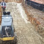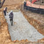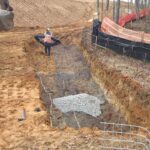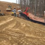 As requested, the site was visited by our AS Engineering and Consulting (ASEC) representative for the purpose of providing quality control inspection and testing services. Visual observation techniques were employed to verify compliance with project drawing/specifications, applicable codes, and materials submittals. The following observations were observed on site this day. Our ASEC representative was on site to observe the contractor (NG Grading) and for the observation/testing of the placement of fill/backfill. The contractor continued placing soil lifts of approximate 8 to 12 inches in size across Lots #14 through #19. Lifts were compacted via a sheep-foot roller. ASEC watched as loaded off road trucks rolled across the lifts to check for stability. There were no signs of severe pumping or deflection present. Density testing was performed, and test results were provided to the contractor. Due to multiple attempts to compact a lift and still receiving failing tests, ASEC recommended to roll in the lift with a loaded off-road truck. Density testing passed once the lift was rolled in. The wall crew began addressing the footing. It was ASEC recommendation to undercut approximately 5 feet deep by 8 feet wide and approximately 50 feet in length of the footing along the face of the wall. This area had low bearing capacity and did not achieve the required bearing capacity of the wall. It was recommended to place geogrid in the bottom of the footing, and then to place approximately 2 to 3 feet of No. 57 stone and then cap the 57 stone with approximately 6 to 12 inches of GAB. The GAB was damped with water and compacted with a trench roller. The wall crew then began to place their baskets and install the wall. ASEC performed density testing, and test results were provided to the contractor. Any failing tests were addressed and retested. The pipe crew is boring under Philadelphia Road to install a sewer line. No testing was requested/performed at this time. We appreciate the opportunity to be of service to you on this project. If you have any questions regarding this report, please feel free to contact us. We will be more than happy to discuss it with you.