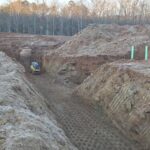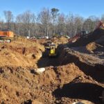 As requested, the site was visited by our AS Engineering and Consulting (ASEC) representative for the purpose of providing quality control inspection and testing services. Visual observation techniques were employed to verify compliance with project drawing/specifications, applicable codes, and materials submittals. The following observations were observed on site this day. Our ASEC representative was on site to observe the contractor (NG Grading) and for the observation/testing of the placement of fill/backfill. The grading crews continued placing 6-to-12-inch lifts of soil across Lots #14 through #19. Lifts were compacted using an 815 sheep-foot roller. The fill used in this area appears to have a large quantity of weathered rock mixed in with finer soils (50/50 mix). It was recommended to remove any large rocks (greater than 2 feet in size) from the fill that was going to be placed within 4 feet of final grade. The contractor is attempting to remove any large rock. The weathered rock that is less than 2 feet in size appears to be breaking down once the sheep-foot rolls in the lifts. ASEC watched as loaded off road trucks rolled across the lifts to check for stability. There were no signs of severe pumping or deflection present across Lots #16 through #19. There was pumping present in Lots #14 and #15 due to over saturated soils. The contractor agreed to scarify this area and allow the soil to aerate. Density testing was performed, and test results were provided to the contractor. The wall crew continued installation of retaining wall #3. This wall will be completed today, and then they plan to begin retaining wall #5. The grading crew will begin excavation of the footing for retaining wall #5 and ASEC will schedule the automatic DCP testing truck to be onsite. Density testing was performed on every basket, and test results were provided to the contractor. Any failed tests were addressed and then retested. The pipe crew began installation and backfilling of sewer pipeline 1.3 to 2.0 (located in roadway near Lots #20 through #26). The sewer structures appear to be waterproofed. The contractor also sealed the joints of the structures with a tar like material and then wrapped the joint with plastic. The contractor stated this was to the spec provided by the county. Density testing was performed once the contractor backfilled approximately 2 to 4 feet over the pipelines. Test results were provided to the contractor, and any failed tests were addressed and then retested. We appreciate the opportunity to be of service to you on this project. If you have any questions regarding this report, please feel free to contact us. We will be more than happy to discuss it with you.