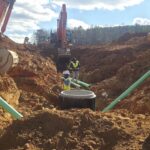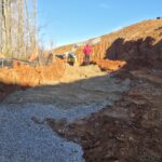 As requested, the site was visited by our AS Engineering and Consulting (ASEC) representative for the purpose of providing quality control inspection and testing services. Visual observation techniques were employed to verify compliance with project drawing/specifications, applicable codes, and materials submittals. The following observations were observed on site this day. Our ASEC representative was on site to observe the contractor (NG Grading) and for the observation/testing of the placement of fill/backfill. The grading crews continued placement of topsoil along slopes and greenspace areas. The soil lifts were approximately 12 inches in thickness and compacted using a sheep-foot roller. The pipe crew continued backfilling of sewer pipeline 2.0 to 2.1 located in the roadway by Lot #25. Density testing was performed and test results were provided to the contractor. The wall crew placed geogrid in the excavated undercut in the footing of retaining wall #5. Then the contractors spread approx. 4 feet of No. 57 stone into the 4-foot undercut section of the wall. They spread approximately 8 to 12 inches of No. 57 stone in the 2-foot undercut location. This was not recommended by ASEC. Upon inspection, ASEC recommended to remove the GAB that was placed and to spread the No. 57 stone as per our original recommendation (2 feet of No. 57 stone with a 6-inch cap of GAB). The contractor argued about how long the wait had been to get started and how it's not their job to spread the rock out into the footing. Density testing was performed, and test results were provided to the contractor. We appreciate the opportunity to be of service to you on this project. If you have any questions regarding this report, please feel free to contact us. We will be more than happy to discuss it with you.