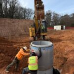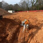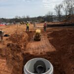As requested, the site was visited by our AS Engineering and Consulting (ASEC) representative for the purpose of providing quality control inspection and testing services. Visual observation techniques were employed to verify compliance with project drawing/specifications, applicable codes, and materials submittals. The following observations were observed on site this day. Crew began work at locations B7–B8 by excavating the soil along the proposed storm line to the required depth and width. The subgrade was then leveled and prepared, and a layer of gravel bedding was placed and graded. A corrugated metal pipe (CMP) was installed from B7 toward B8 and aligned to the required grade. At B8, a manhole was installed and set on the prepared gravel base. All pipe-to-manhole connections were sealed with concrete. After completing the installation, backfill material was placed around the manhole and pipe in lifts of approximately 6–8 inches. Each lift was compacted using a drum roller for the general backfill and a jumping jack compactor in confined areas around the manhole. Meanwhile, the other crew resumed backfilling operations at locations F2–F3. The available backfill material contained excessive moisture and did not meet the required density; however, due to the forecasted rainfall, the contractor directed the crew to proceed with backfilling to protect the installed pipes and structures. The soil was placed in lifts around the manhole and pipe, with the understanding that the material would be reworked on the next working day once suitable conditions were available to achieve the required compaction. We appreciate the opportunity to be of service to you on this project. If you have any questions regarding this report, please feel free to contact us. We will be more than happy to discuss it with you. <div class="thumb_view"> <div class="row"></div> </div> <div class="row"> <div class="col-sm-6"></div> </div>