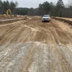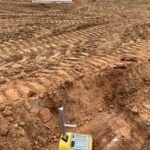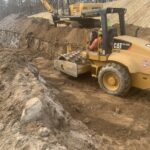 As requested, the site was visited by our AS Engineering and Consulting (ASEC) representative for the purpose of providing quality control inspection and testing services. Visual observation techniques were employed to verify compliance with project drawing/specifications, applicable codes, and materials submittals. The following observations were observed on site this day. On the above date our representative was on site to observe the grading contractor continue to place fill for building Lots #37 thru 34. The fill placement was compacted using a vibratory sheep-foot roller (placed in lifts). The writer performed density testing using a Troxler Nuclear gauge model 3430, serial no. 91643.The density tests were performed at the basement slab elevations and the front of the lot elevations. The writer also performed a field proctor today with results being (98.0 pcf @17.2% moisture content) with the soil description of a multi-colored fine to medium sandy silt. After recompacting efforts all compaction results met job requirements. The writer also observed installation of an 8" ductile iron pipe (DIP) water line pushed through a sleeve across the Parkway south of the sanitary sewer manhole #5. In order to install the water line today (very muddy conditions on site) mud was tracked onto previous placed base stone for the Parkway between manholes #6 and 9. The existing subgrade between manhole #5 and 6 was also found to be disturbed. Standing water was present on the base rock between manholes #7 and 8 near the storm curb inlet. It was recommended to cut a ditch to drain this water into a swale ditch removing the water from the base rock and to limit all traffic off the subbase stone and subgrade soils to prevent further soil contamination of the rock and to prevent additional subgrade soils undercutting. Observed the pipe contractor backfill an 8" PVC sanitary line between manhole structures #12 and 13 using excavated rock fill which was placed in suitable compacted lifts using a vibratory sheep-foot roller. Density tests couldn't be performed on the rock and soil mixture (rock fill). Compaction efforts were found to be visually satisfactory. The contractor is bedding all pipe on No. #57 stone and placing clean fill over top of the pipe. The contractor also continued installing 8" ductile iron pipe (DIP) between manholes #13 and 14 where heavy continuous hard rock was encountered without any fine soil materials present. The contractor was reminded that using predominately all rock fill requires monitoring to see if placement is acceptable. The contractor was reminded that at least four feet of clean fill should be placed over all rockfill (and predominately hard rock fill). All excavated rock until 4:00 pm was removed using the 490 excavator without requiring hammering. The contractor did spend one hour hammering hard rock between 4:00 and 5:00 pm. which was three feet too high in bottom of trench. We appreciate the opportunity to be of service to you on this project. If you have any questions regarding this report, please feel free to contact us. We will be more than happy to discuss it with you.
