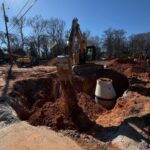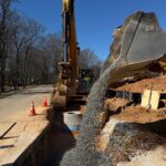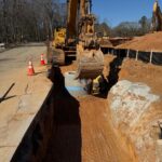 As requested, the site was visited by our AS Engineering and Consulting (ASEC) representative for the purpose of providing quality control inspection and testing services. Visual observation techniques were employed to verify compliance with project drawing/specifications, applicable codes, and materials submittals. The following observations were observed on site this day. Crew continued working between points V0 and V1 by performing backfilling operations using suitable soil material placed in lifts of approximately 6 to 8 inches. Each lift was compacted using a double-drum roller. The crew then placed No. 57 stone bedding and installed a reinforced concrete pipe (RCP), extending from the existing RCP in the south direction. The pipe joints were aligned and sealed using mortar. Following pipe installation, additional backfill material was placed in lifts and compacted. Crew continued working between points W1 and W2. The work progressed up to manhole W2, where an 8-inch ductile iron pipe (DIP) had been previously installed. Backfill material was placed around the pipe and structure in lifts of approximately 6to 8 inches and compacted using a double-drum roller to and 3 to 4 feet of temporary backfill was placed because the contractor said they would rework this area while installing the pipes on points of A which pass-go through point w2. We appreciate the opportunity to be of service to you on this project. If you have any questions regarding this report, please feel free to contact us. We will be more than happy to discuss it with you.