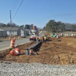 As requested, the site was visited by our AS Engineering and Consulting (ASEC) representative for the purpose of providing quality control inspection and testing services. Visual observation techniques were employed to verify compliance with project drawing/specifications, applicable codes, and materials submittals. The following observations were observed on site this day. Our ASEC representative was on site to observe the contractor (NG Grading) and for the observation/testing of the placement of fill/backfill. Curbs are being poured for the deceleration lane at the front entrance of the site. The wall crew placed approximately 6 inches of No. 57 stone with 6 inches of GAB cap over the 1-foot excavated area in the footing of retaining wall #2. Before the installation of rock, the contractor placed their geogrid under the rock. The GAB was compacted and then the wall crew began installation of retaining wall #2. Density testing was performed and test results were provided to the contractor. Elevations were confirmed from the grading crew and the wall crew. The pipe crew continued installation of SSMH. 1.6 to 1.7. The backfill material mainly consisted of rock (approx. 75% rock and 25% finer materials to fill voids). This area was visually inspected to evaluate compaction of the pipeline, as density testing with a gauge was not possible. The contractor spread lifts of approximately 12 inches in thickness across the trench and used a sheep-foot roller and trench roller to compact the lifts. This area appears to be well compacted. The final grade will be placed with finer material and tested. On Lots #32 through #40 and #85 through #92, topsoil was stripped and a proof-roll was performed with a loaded off-road truck. There was minimal pumping observed at this time. A small amount of pumping was present in the deepest part of the fill (+24ft). It was recommended to place a layer of large rock, that was stockpiled after being removed from structural fill, into this area. Then the contractor placed a thickened lift over the rock and began compacting the lifts with a sheep-foot roller. The grading crew started placing fill of approximately 12 inches in thickness along Lots #32 through #40 and #85 through #92 area. These lots are mainly being filled on the front yards and the roadway in between the lots. The pads for Lots #85 through #92 will be filled when retaining wall #1 has been installed. The pads for Lots #32 through #40 are cut pads and will be proof-rolled with a loaded off-road truck once finished excavating. We appreciate the opportunity to be of service to you on this project. If you have any questions regarding this report, please feel free to contact us. We will be more than happy to discuss it with you.