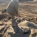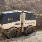 Compacting efforts at storm line between headwall# 1 and manhole B2