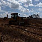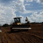 Spreading fill material using crawler bulldozer