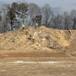 As requested, the site was visited by our AS Engineering and Consulting (ASEC) representative for the purpose of providing quality control inspection and testing services. Visual observation techniques were employed to verify compliance with project drawing/specifications, applicable codes, and materials submittals. The following observations were observed on site this day. Our representative was on site to observe the grading contractor begin placing rock fill after blasting was performed at the slope embankment north of Lot #66. The contractor was reminded that all rock fill placed for the slope embankment or building lots be placed in lifts according to size of rock and be compacted using a vibratory sheep-foot roller or using a loaded off-road dump truck after every lift placement averaging two feet to three feet. The pipe contractor continued installing 8" ductile iron sanitary sewer line between manholes # B-2 and B-4 (and backfilling). Density tests were performed using a Troxler Nuclear gauge model 3430, serial no. 91643. Compaction results were suitable for job specifications. The blasting contractor performed a blast today for Lots #47 and 48 and also continued drilling at Lots #42 and 43. The paving contractor continued the undercutting of recommended subgrade repair areas between manholes #6 and 9 on Naturewalk Boulevard that was estimated to be 252 tons of extra base rock to stabilize the subgrade. A moderate amount of movement was observed under proof-roll traffic. The undercut areas averaged -8" with some isolated areas at -12". The base stone placement observed today appears to be coming from two different sources with one source having more finer materials. The contractor stated that the finer materials were coming from there office and have had great results in compacting. We appreciate the opportunity to be of service to you on this project. If you have any questions regarding this report, please feel free to contact us. We will be more than happy to discuss it with you.