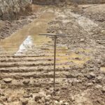 As requested, the site was visited by our AS Engineering and Consulting (ASEC) representative for the purpose of providing quality control inspection and testing services. Visual observation techniques were employed to verify compliance with project drawing/specifications, applicable codes, and materials submittals. The following observations were observed on site this day. Our ASEC representative was on site to observe the contractor (Lewis Contracting) and for the observation/testing of the placement of fill/backfill. The contractors excavated out the footing for the concrete wall for the pond. There was ground water seepage observed approximately to 2 to 3 inches deep in a large section of the footing. Probe rod testing was performed and the probe rod indicated very low bearing. DCP testing was then performed. ASEC recommended to excavate approximately 3 to 4 feet in depth and replace with No. 57 stone placed in "compacted" lifts. It was recommended to have the rock onsite before excavation, and to use pumps to manage the ground water below the bottom of the footing. ASEC requested that the contractor notify ASEC when they plan to do this remediation. We appreciate the opportunity to be of service to you on this project. If you have any questions regarding this report, please feel free to contact us. We will be more than happy to discuss it with you.