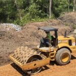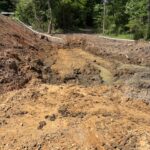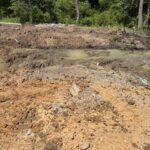 On the above date the writer was onsite and observed the Grading contractor continue excavating saturated organic sub grade conditions at toe of slope embankment west of design spillway.The contractor excavated the materials and replaced with a thicken bridge lift to stabilize the existing saturated sub grades.The writer performed density tests using a Troxler Nuclear model 3430,serial no.91643.The writer also performed a field proctor on in place fill materials that was mostly mixed with chirp materials.Compaction results appeared suitable for site specifications.The contractor continued placing additional fill over tested area as recommended .It was also recommended to place rip rap stone at discharge area of installed french drains areas being discharged into wooded area.