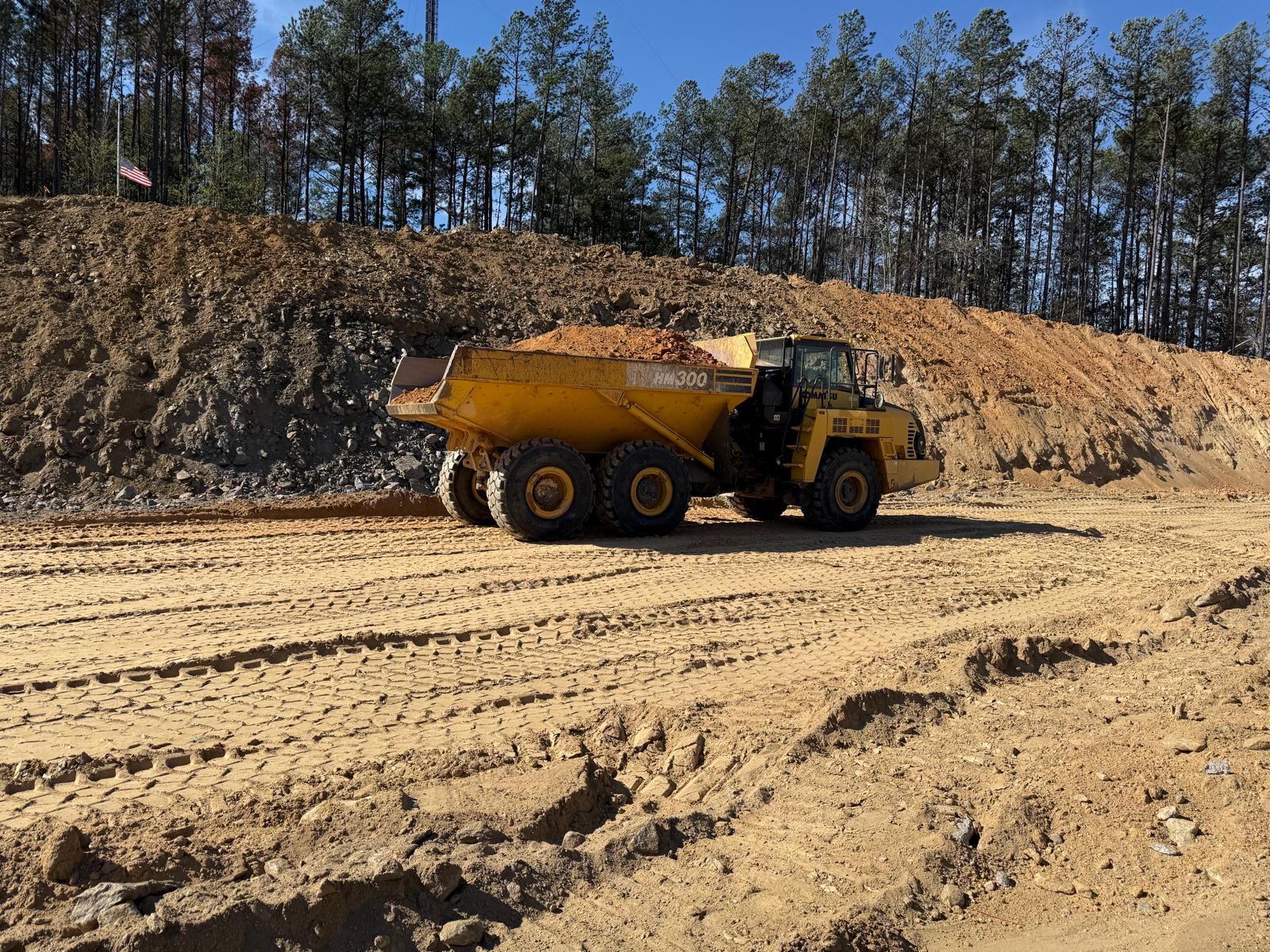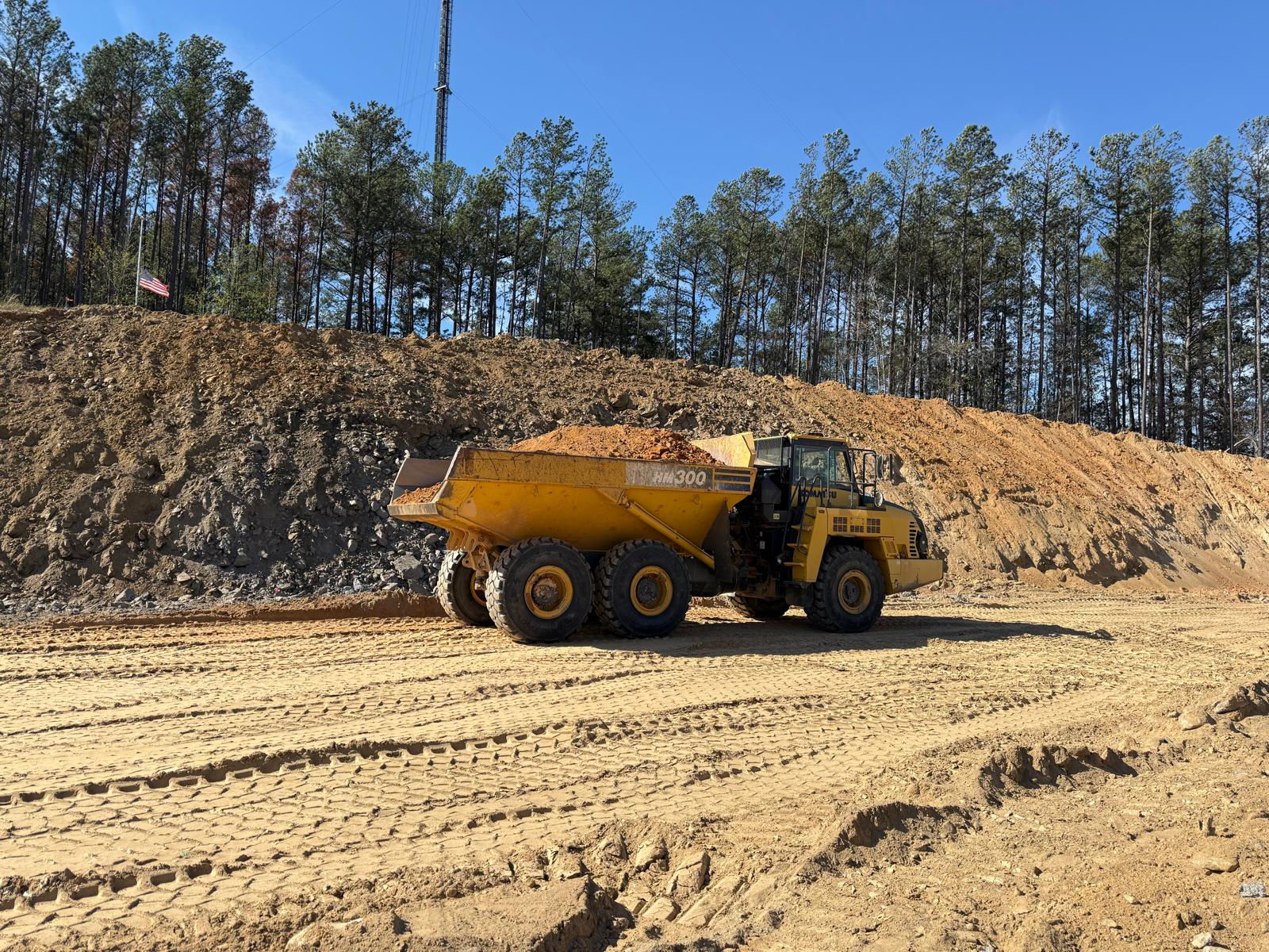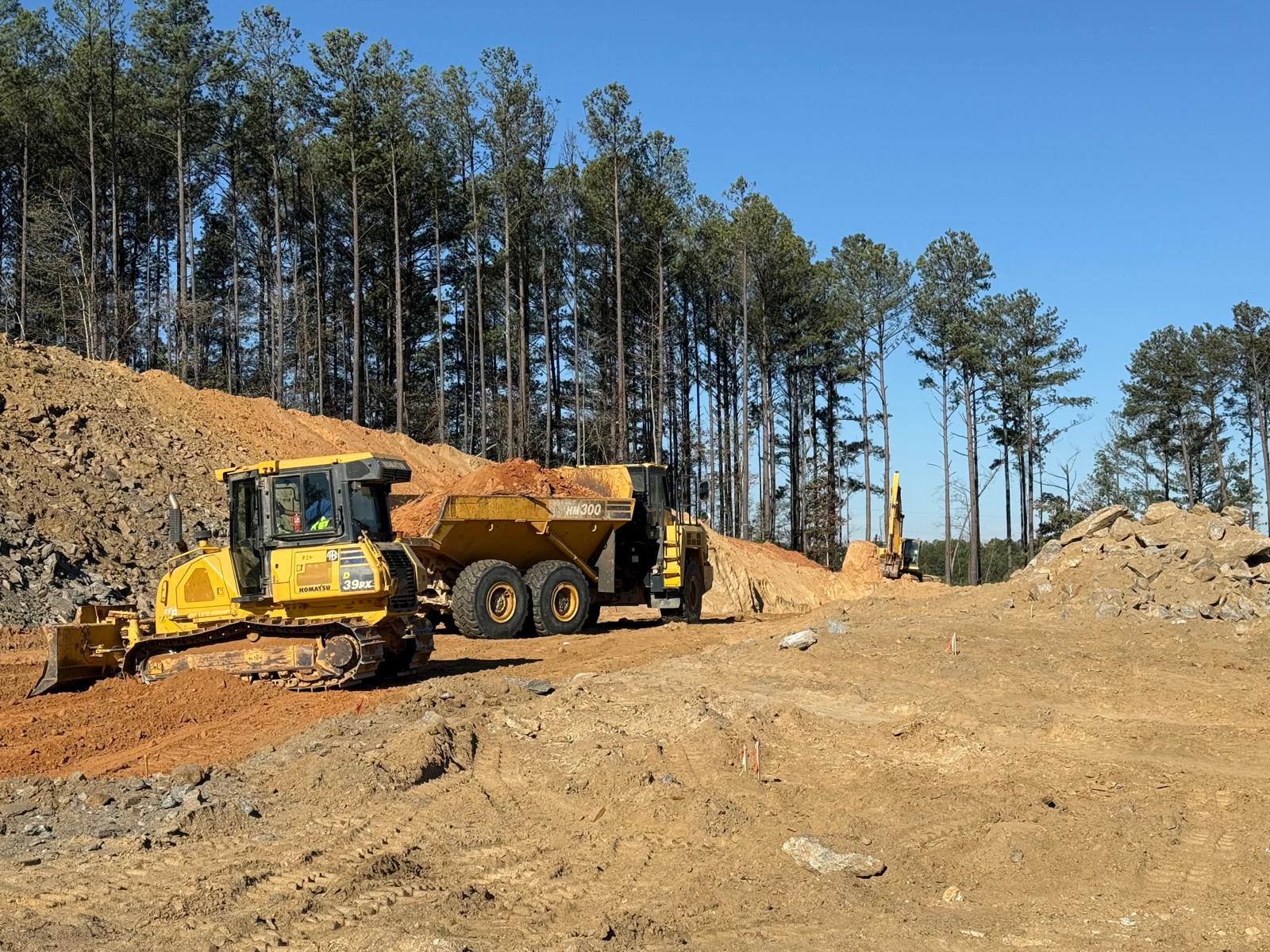 - Upon arrival, the contractor was engaged in cutting the roadway using a Komatsu PC 360LC and from the west of the job site. Fill was being transported with two tandem dumps on the tennis Court and parking, while dozing was performed with a Komatsu D85EX and compaction with CAT563E.