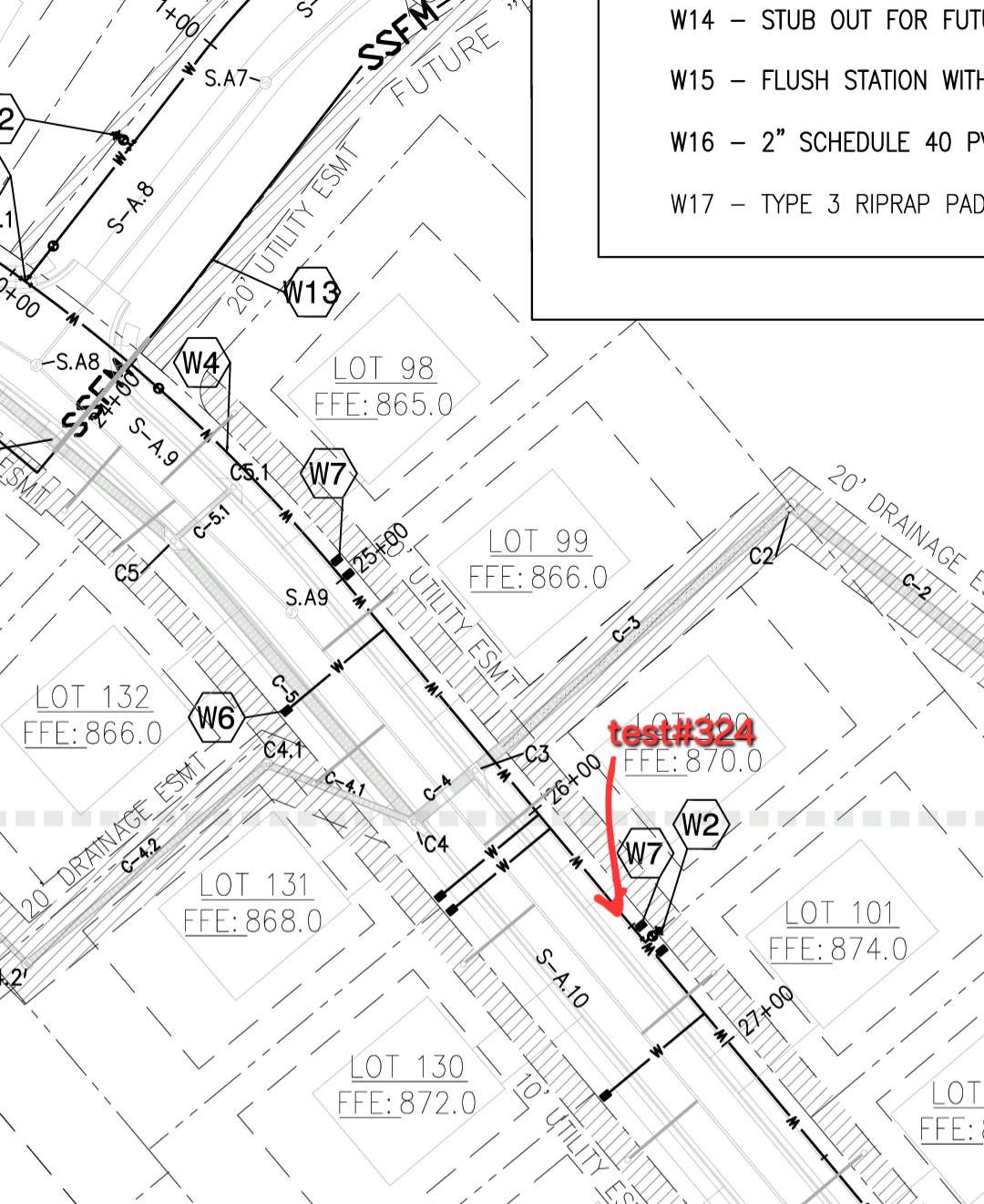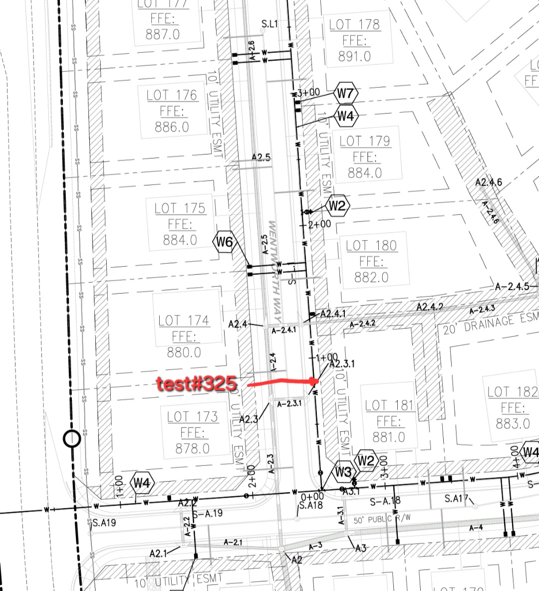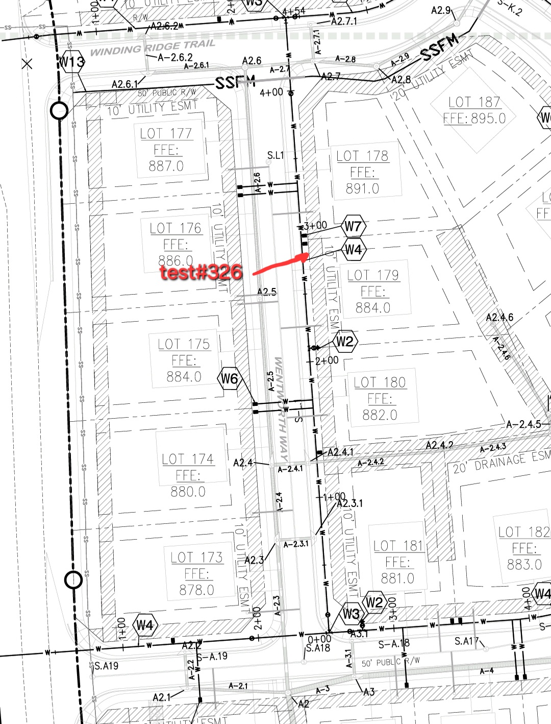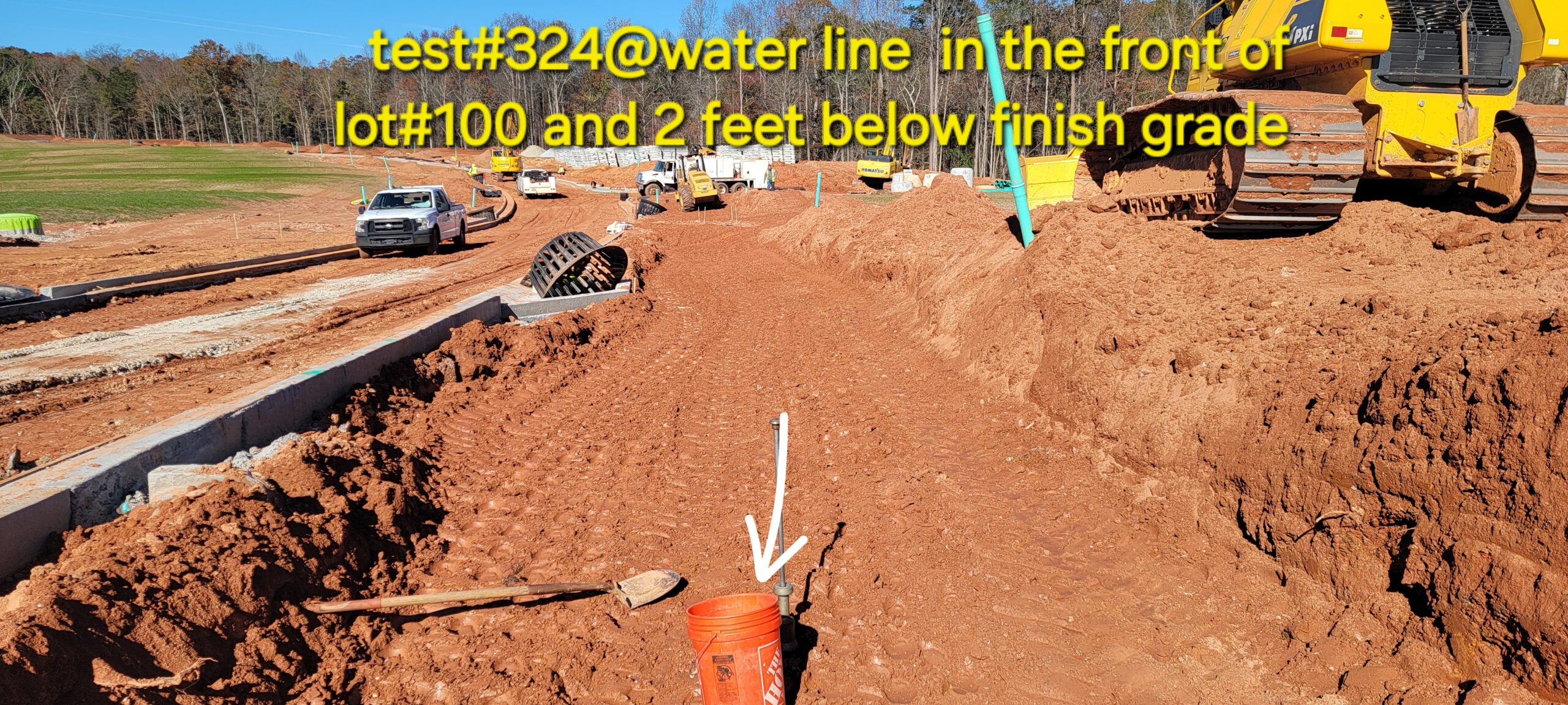 - The placement and compaction of backfill soils for the water line in front of Lots #24 through #126 and Lots #98 through #100 and Lots #178 through #181 continued this day.