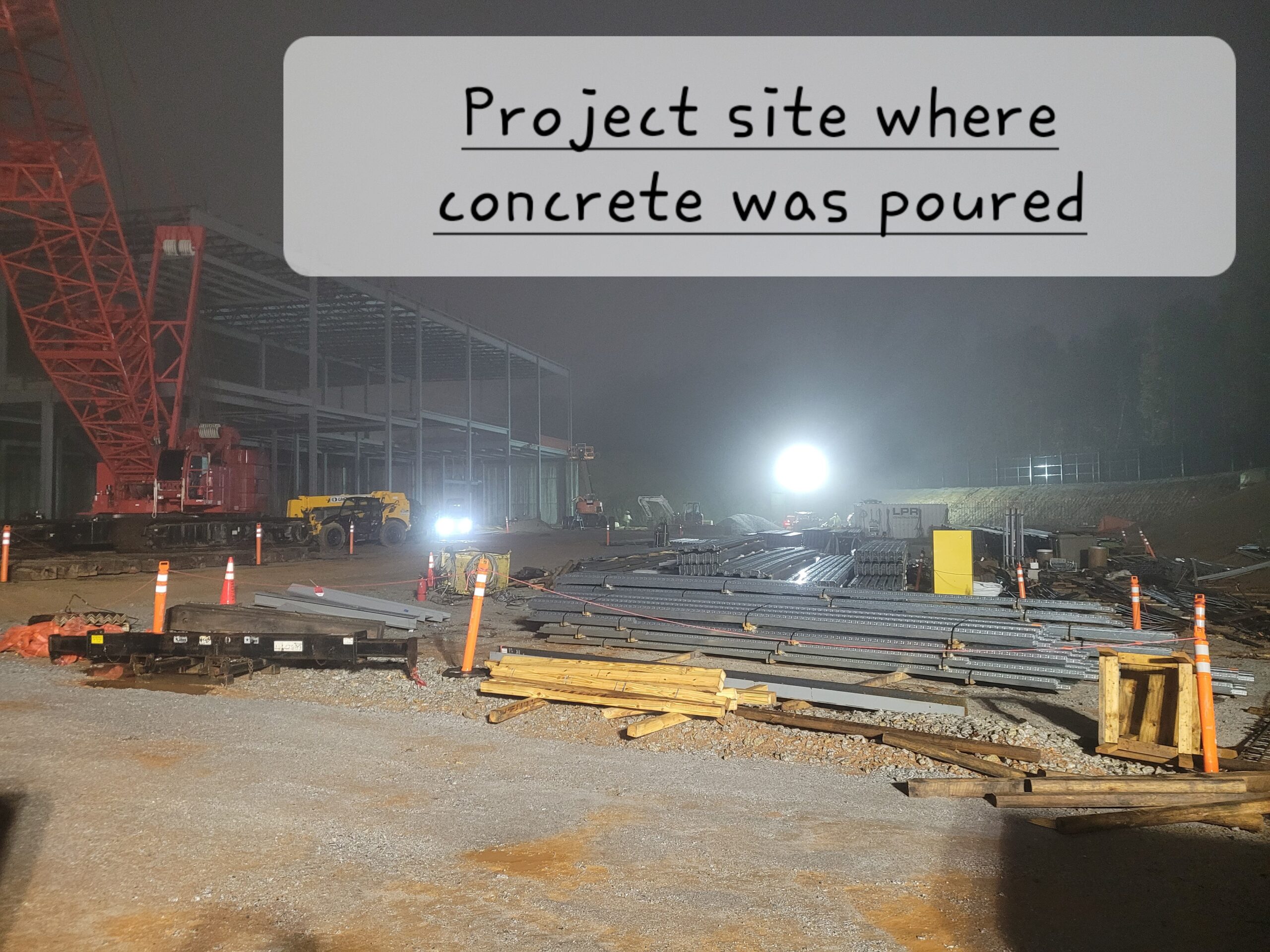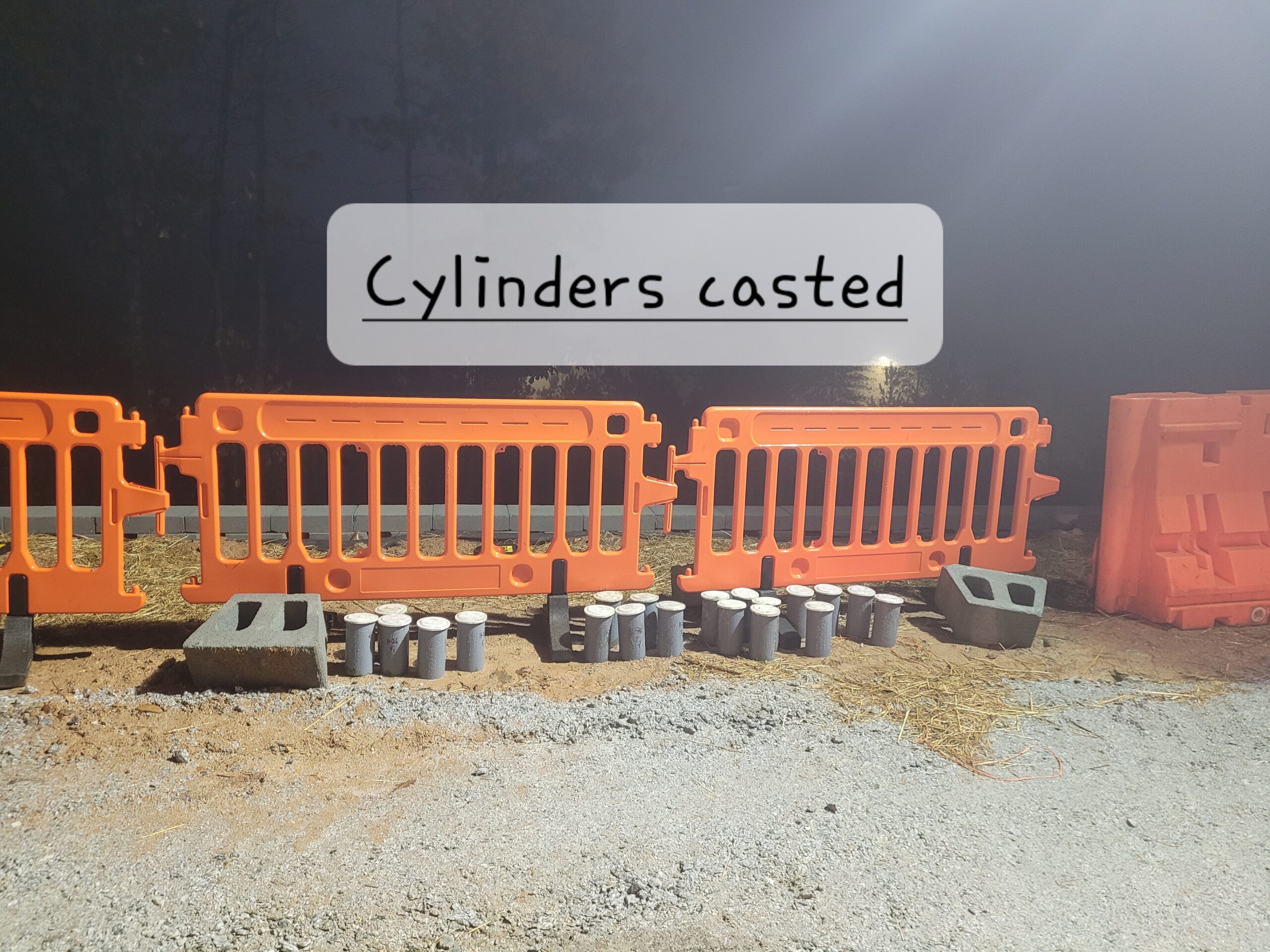 Concrete placement began at 1:00 am and was provided by Greater Georgia Concrete LLC. Two mixes were placed today, a 3000 psi and a 4000 psi mix. Four (4) sets of concrete specimens were cast today.