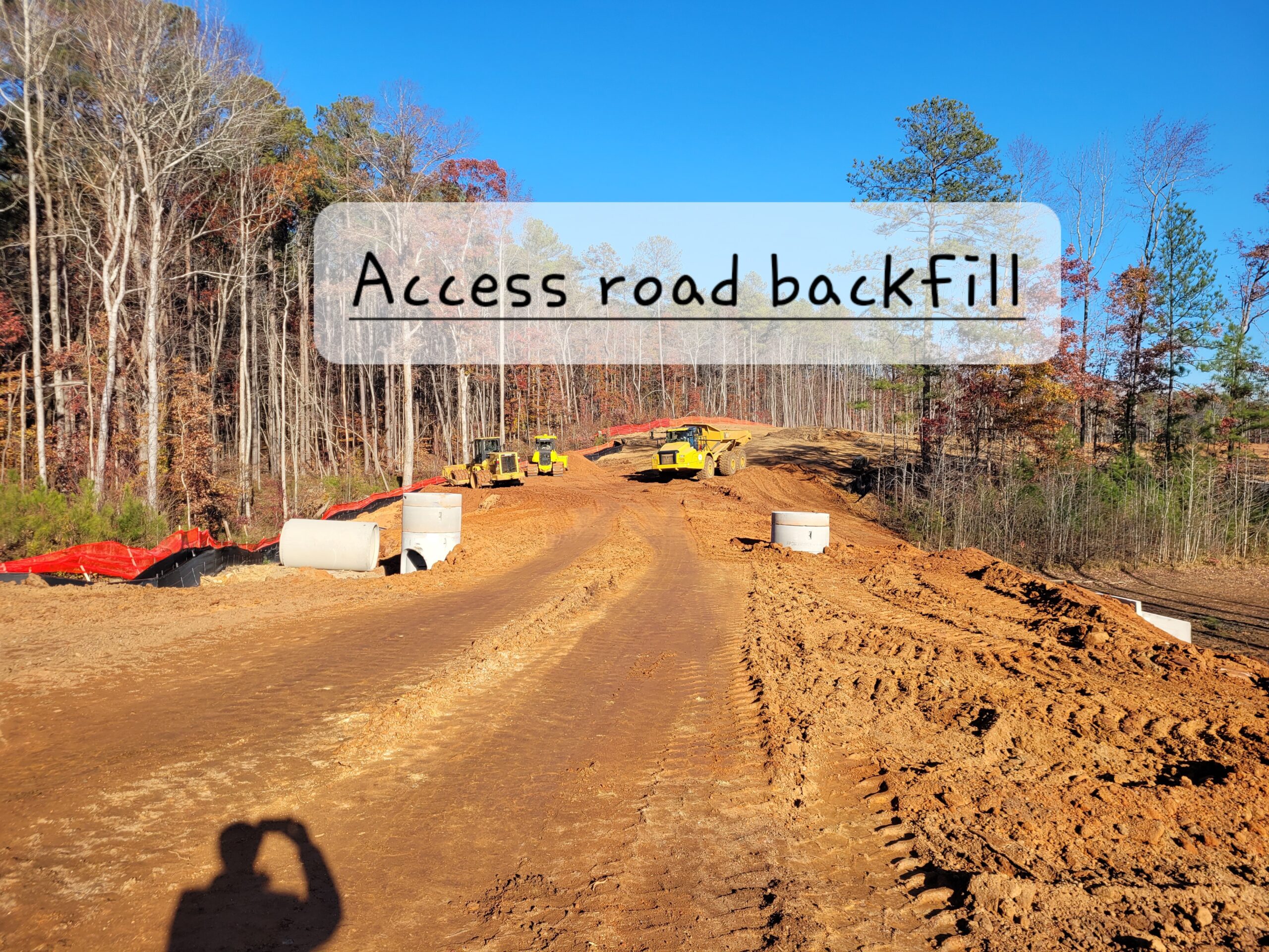 Fill placed in the access road was obtained from various site cuts.