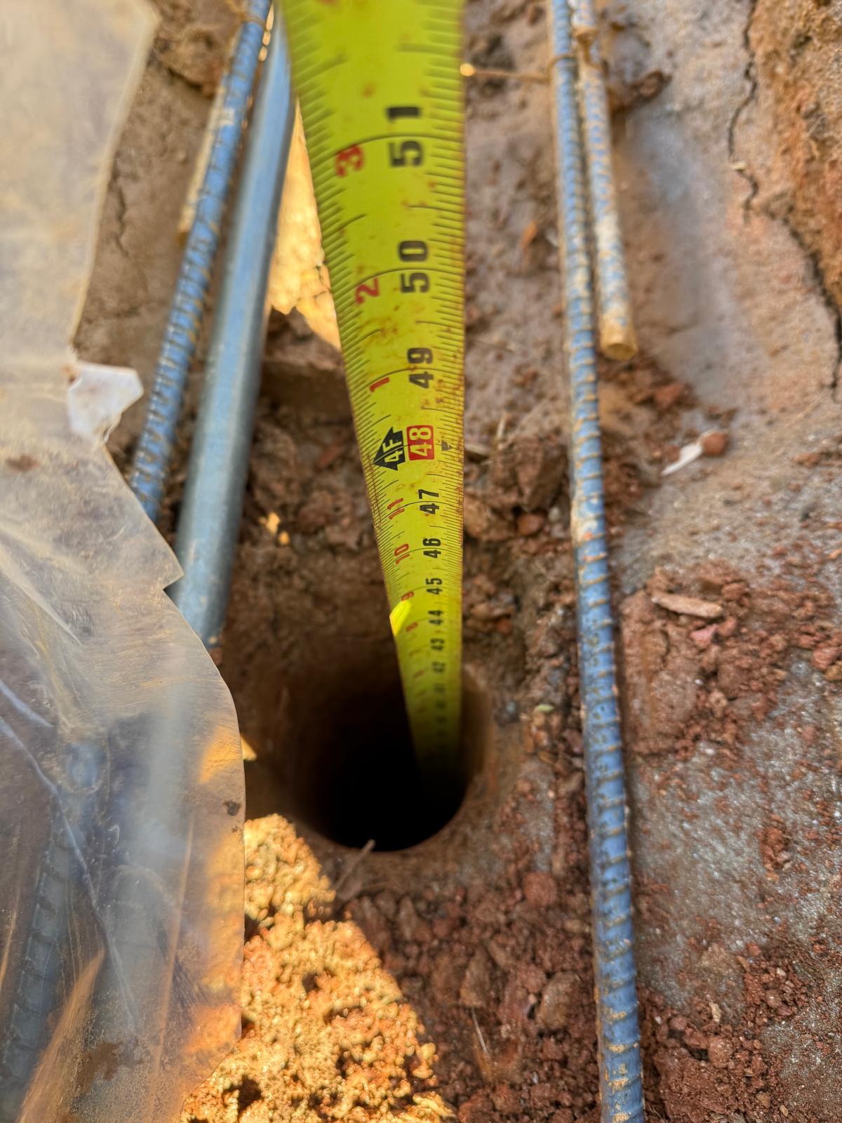 - South Side: Auger refusal was encountered at a depth of 3 feet, with 12 blows at 1 foot and 12 blows at 2 feet. Refusal was followed by an offset at 2 feet, requiring 9 blows at 1 foot.