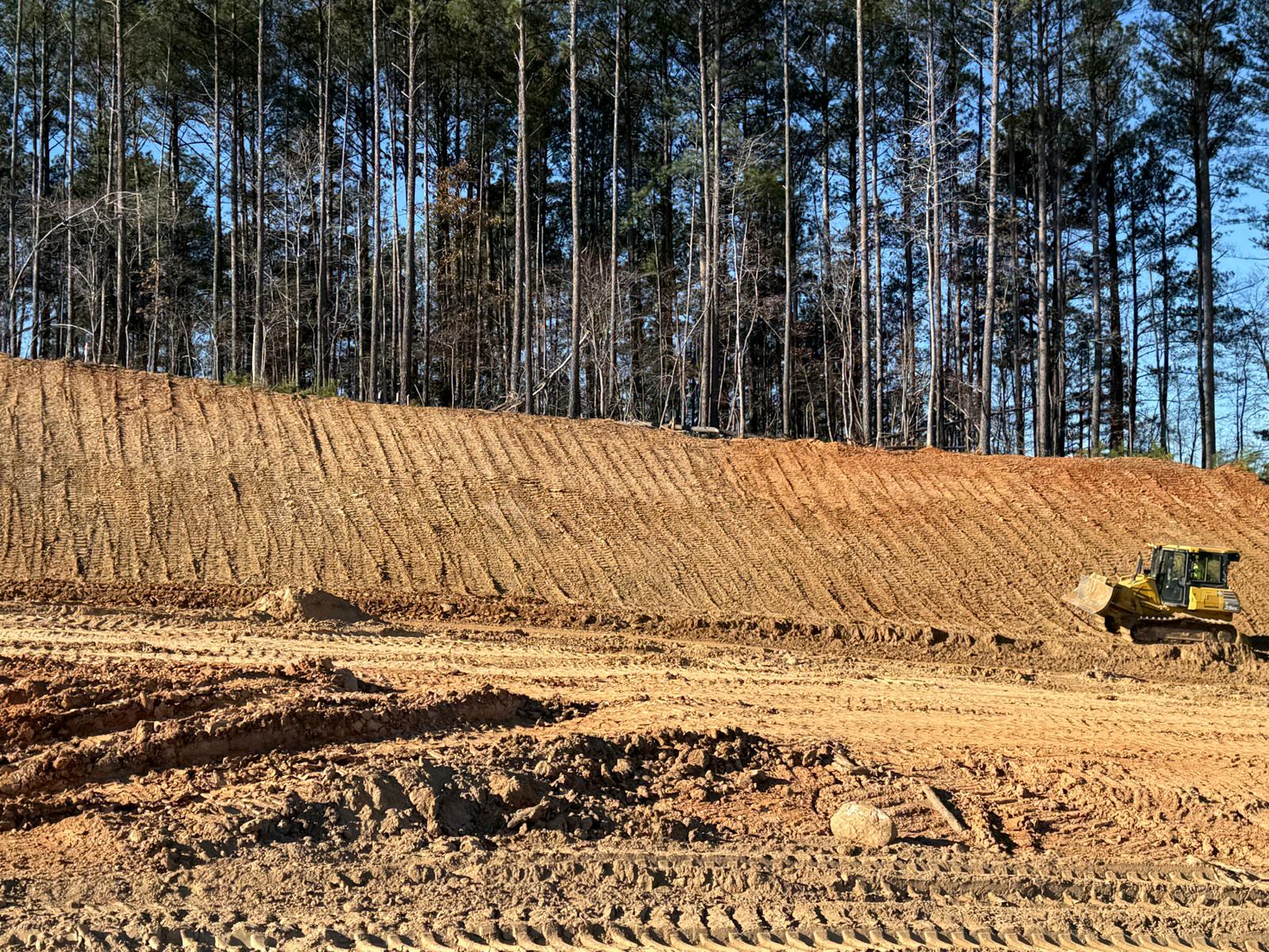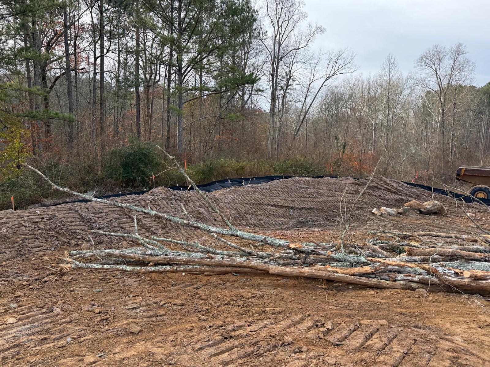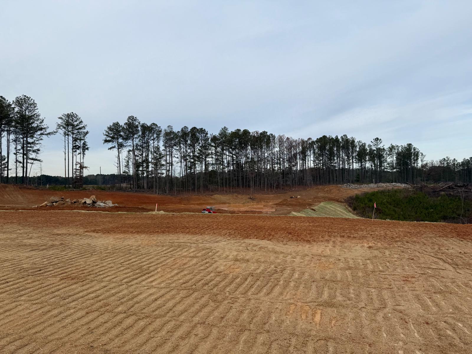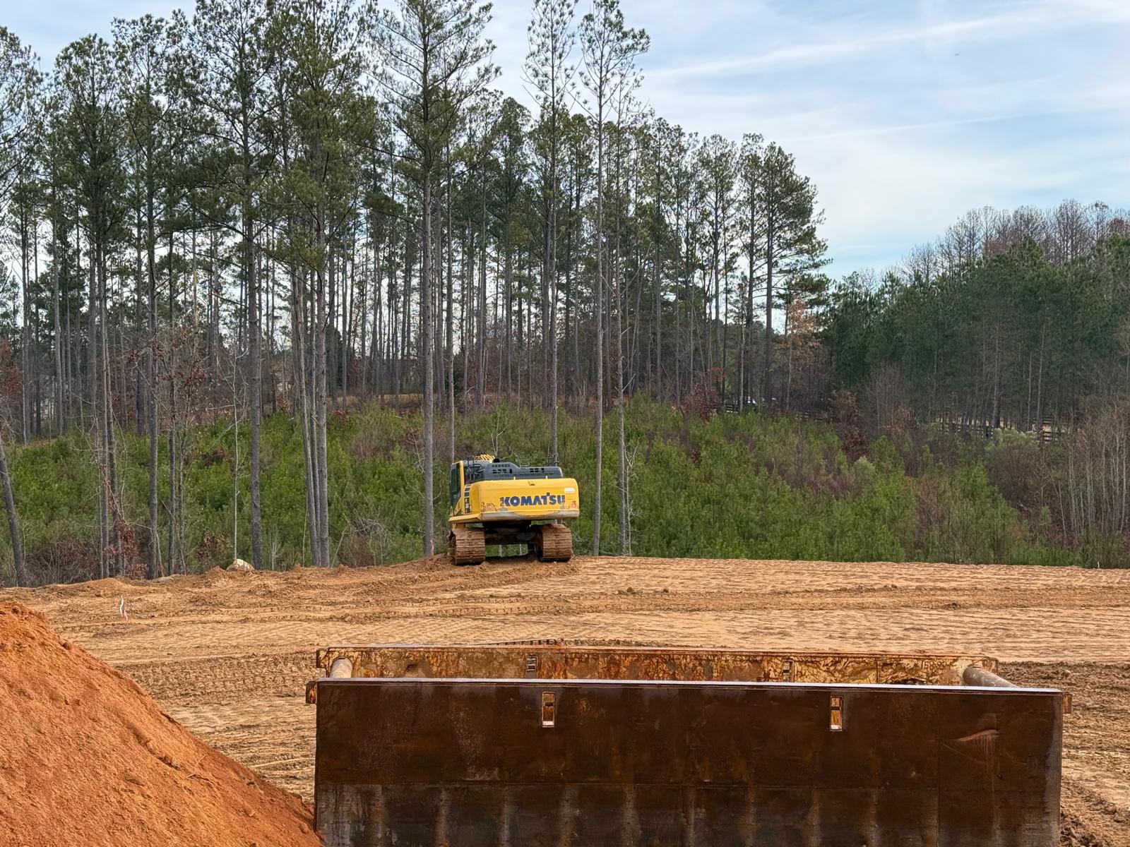 As part of the ongoing site preparation, the removal of trees has been completed, clearing the area for further work. Additionally, grading operations have been started.