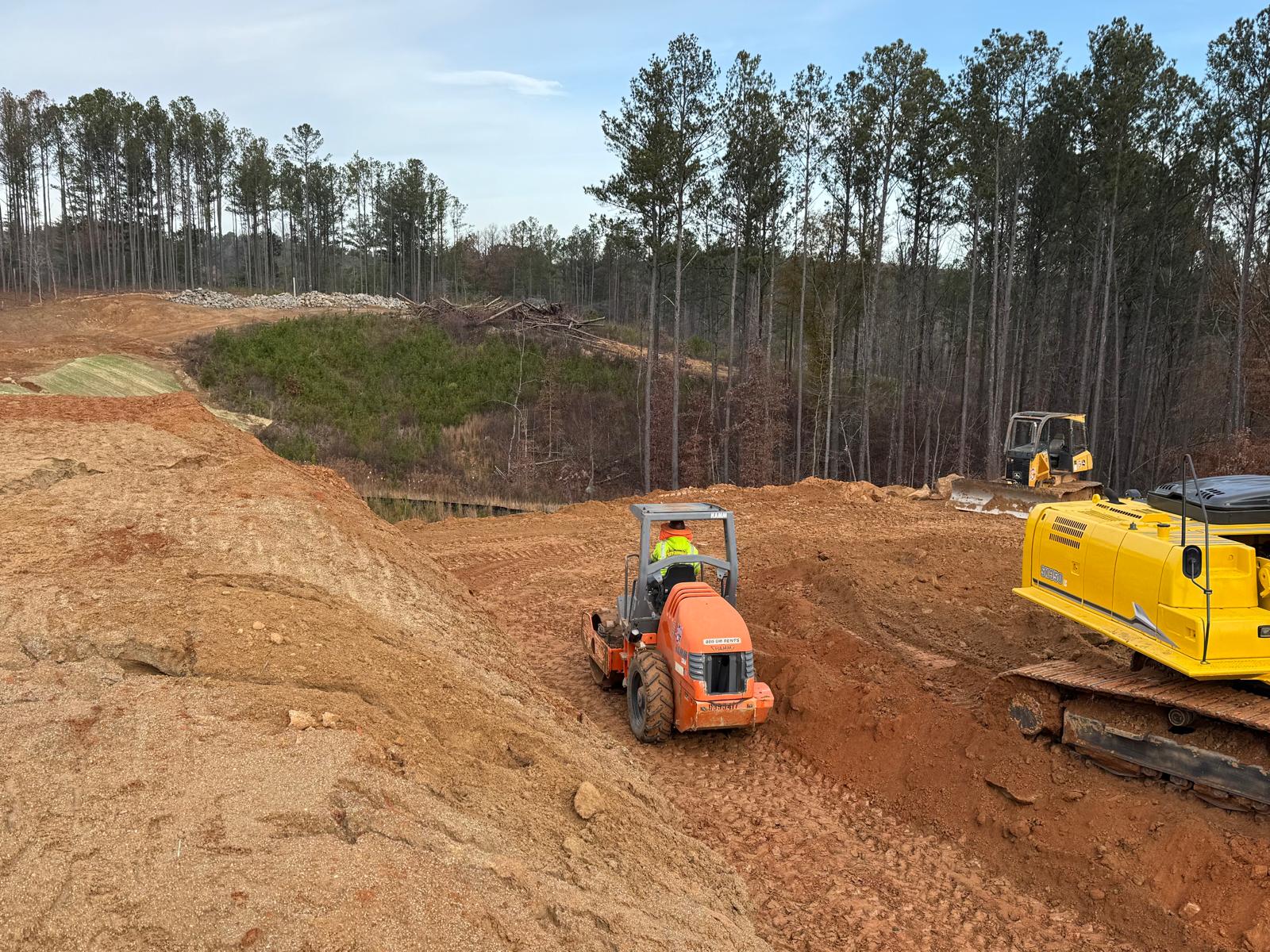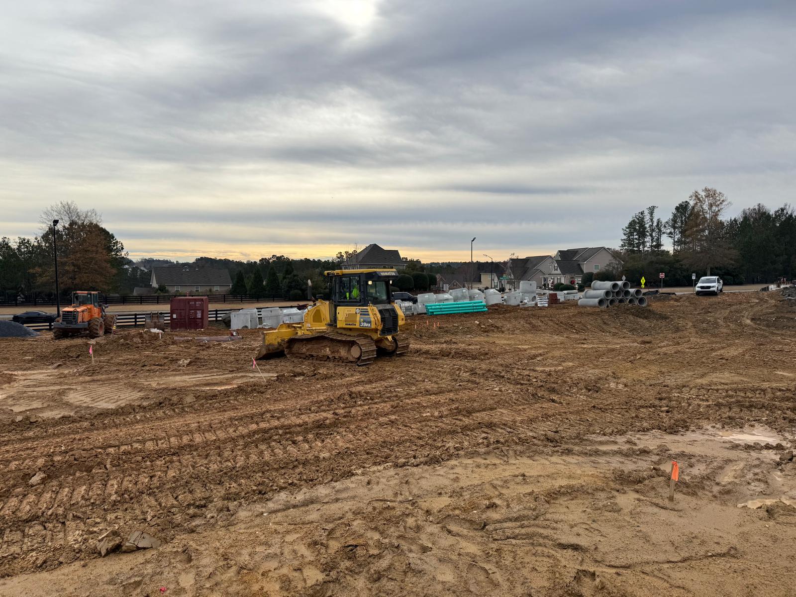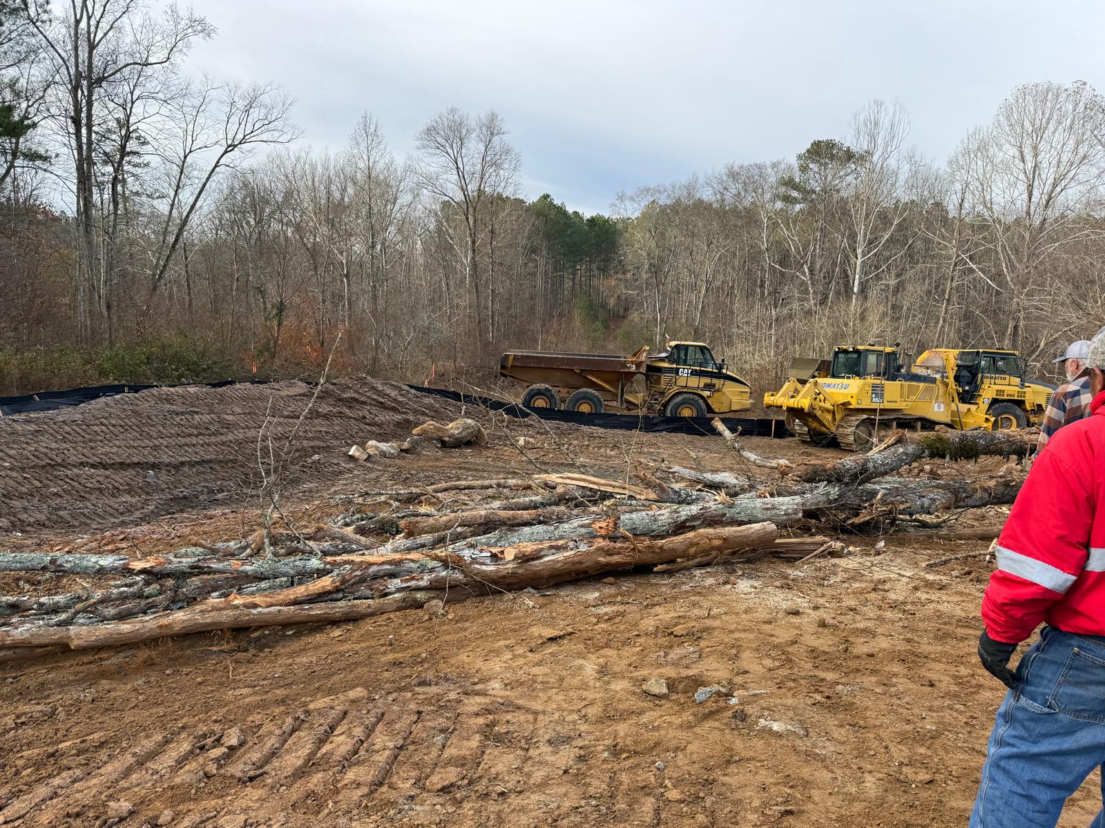 As part of the ongoing site preparation, the removal of trees has been completed, clearing the area for further work. Additionally, grading operations have been started.