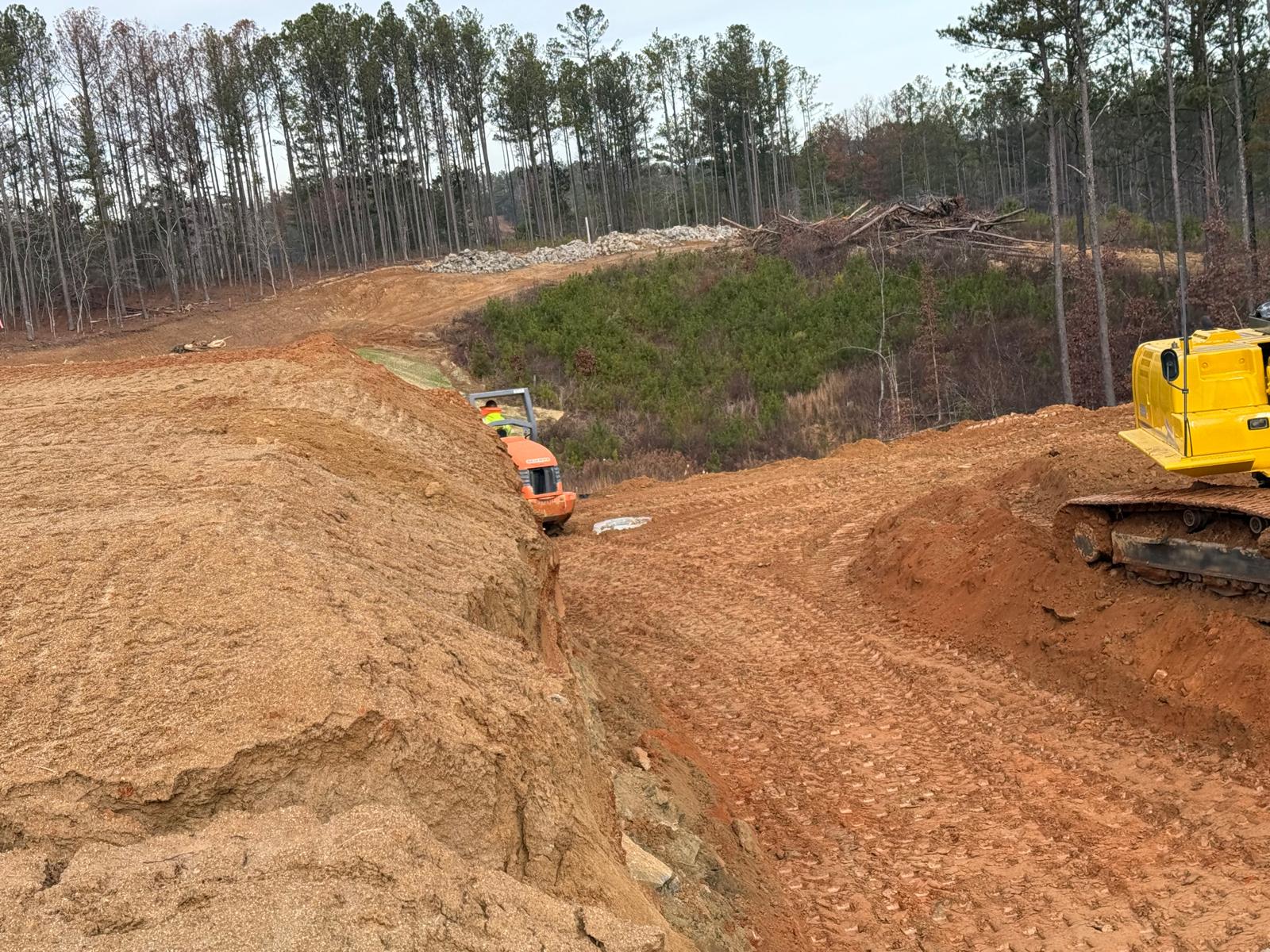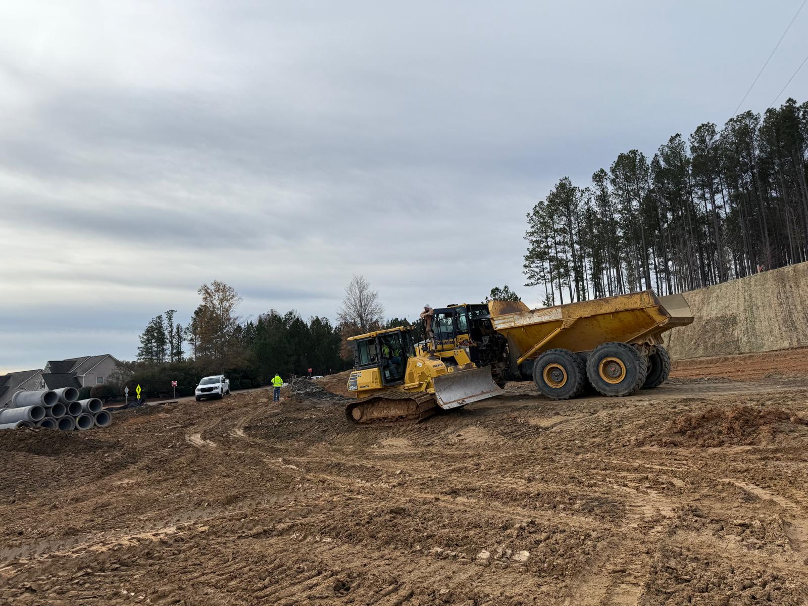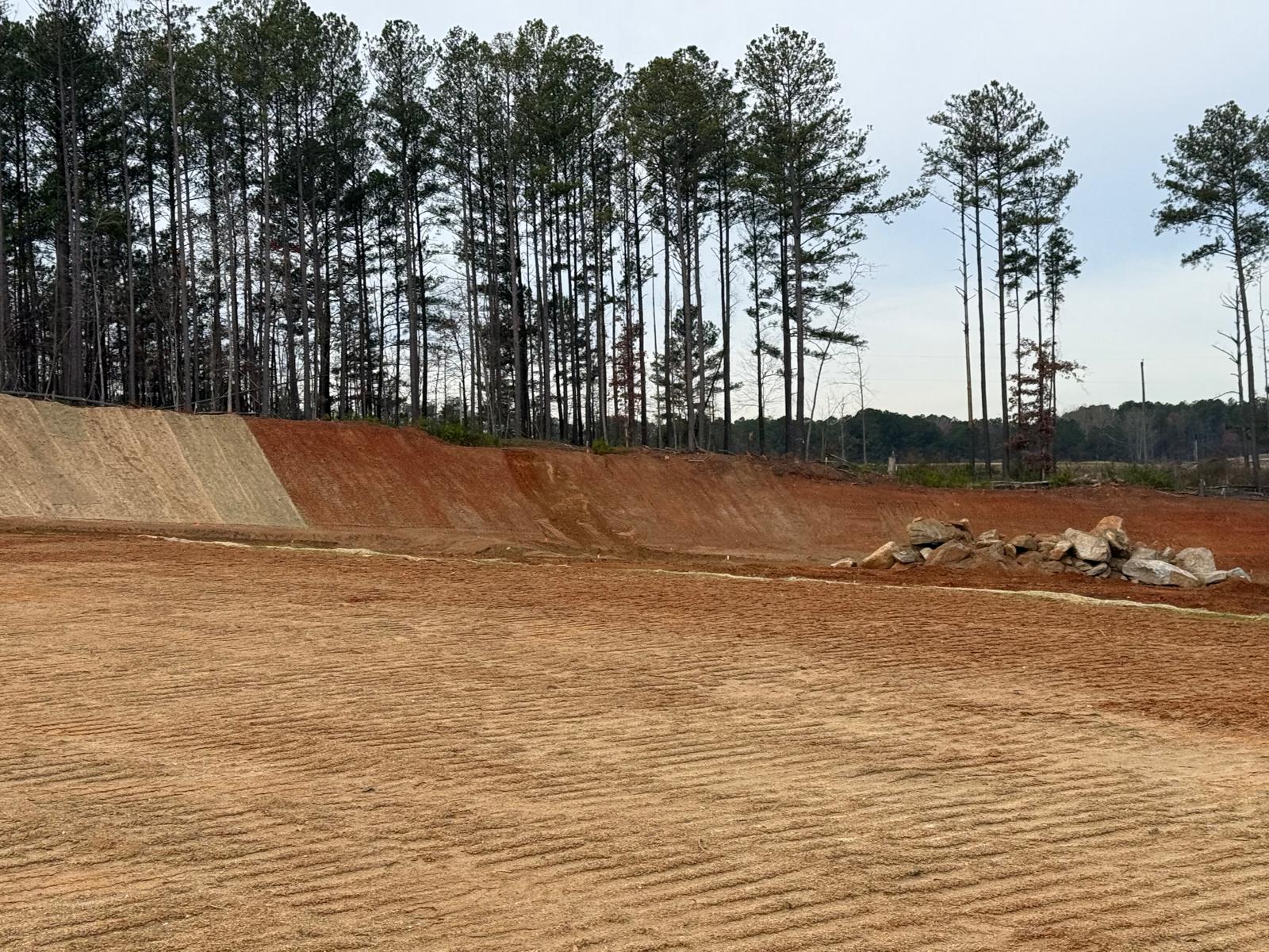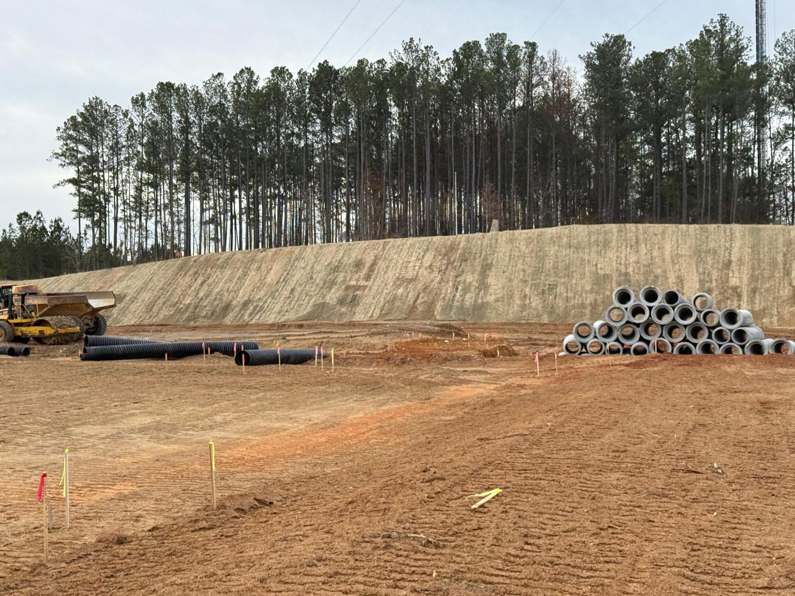 As part of the ongoing site preparation, the removal of trees has been completed, clearing the area for further work. Additionally, grading operations have been started.