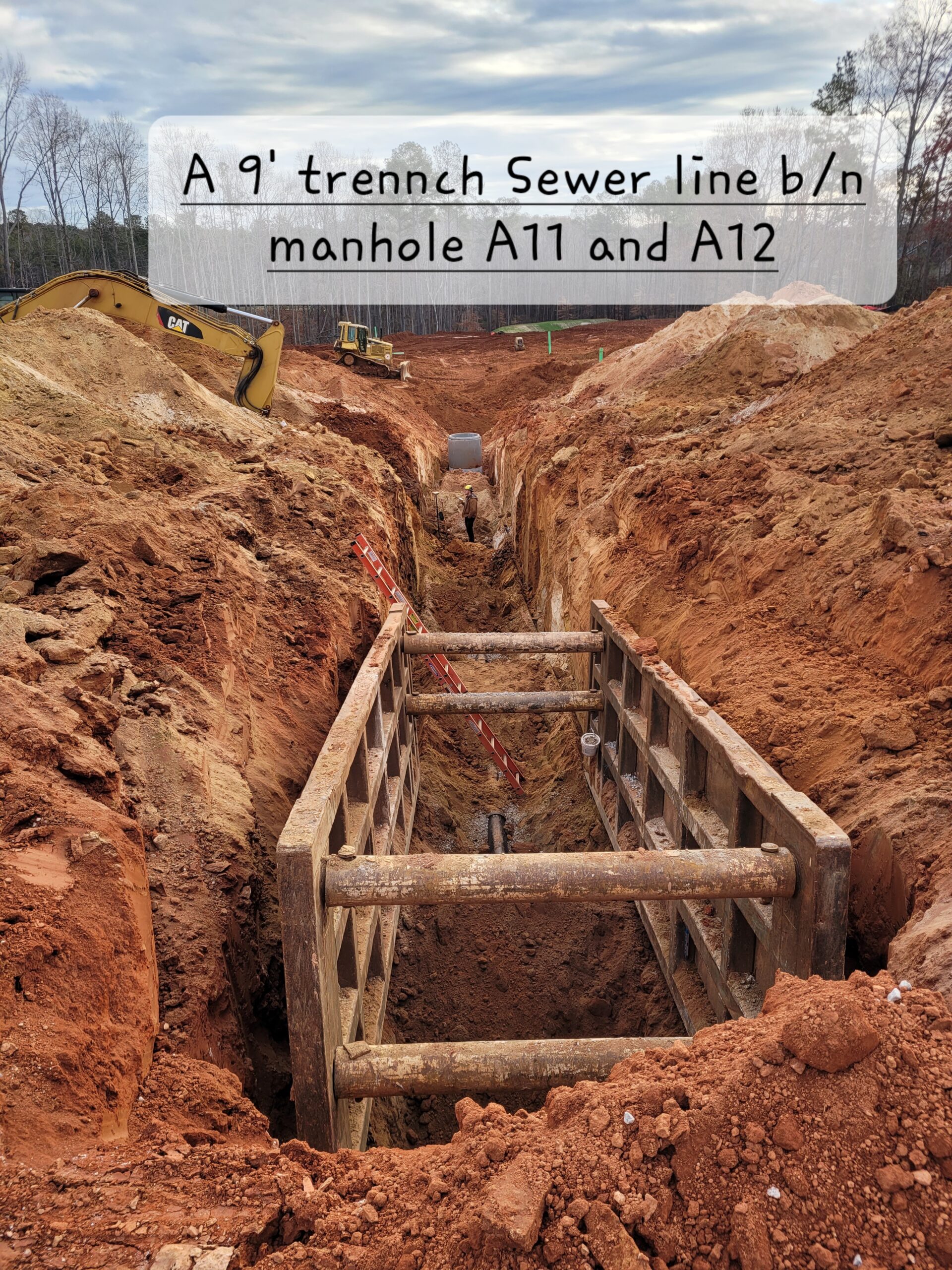 A 9-foot-deep trench was excavated for the sewer line between manholes A11 and A12.- The trench was backfilled and compacted.