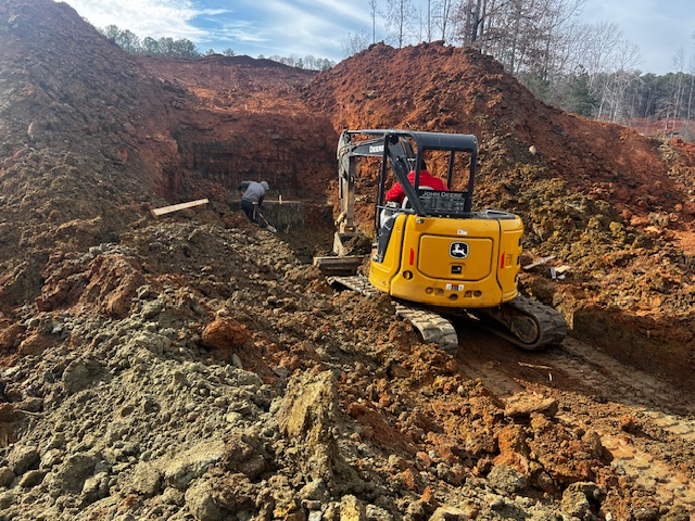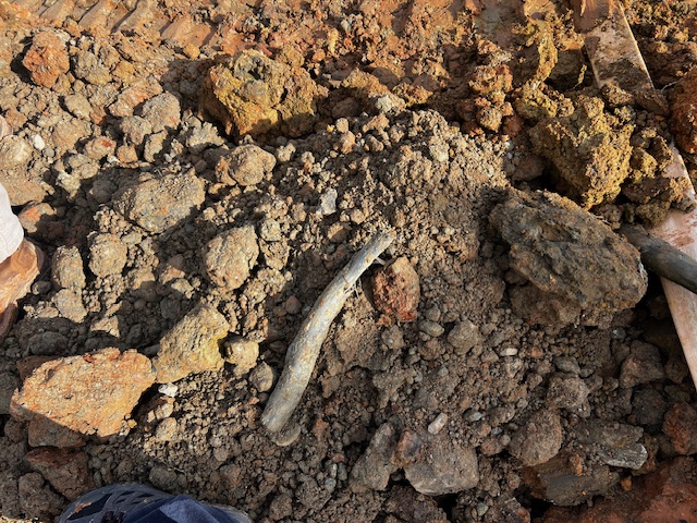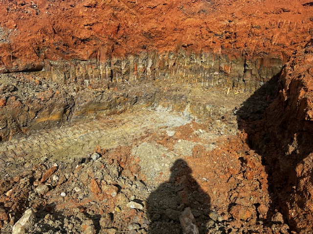 - At the excavation surface, organic-laden fill material mixed with tree debris was observed throughout the footing’s length and width.