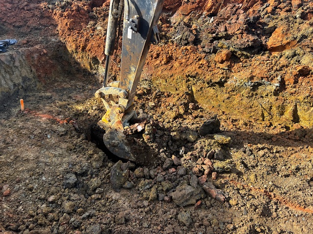 - Excavation reached approximately eight feet, the maximum reach of the excavator, and revealed organic-laden alluvial soils with strong odors and high moisture content.