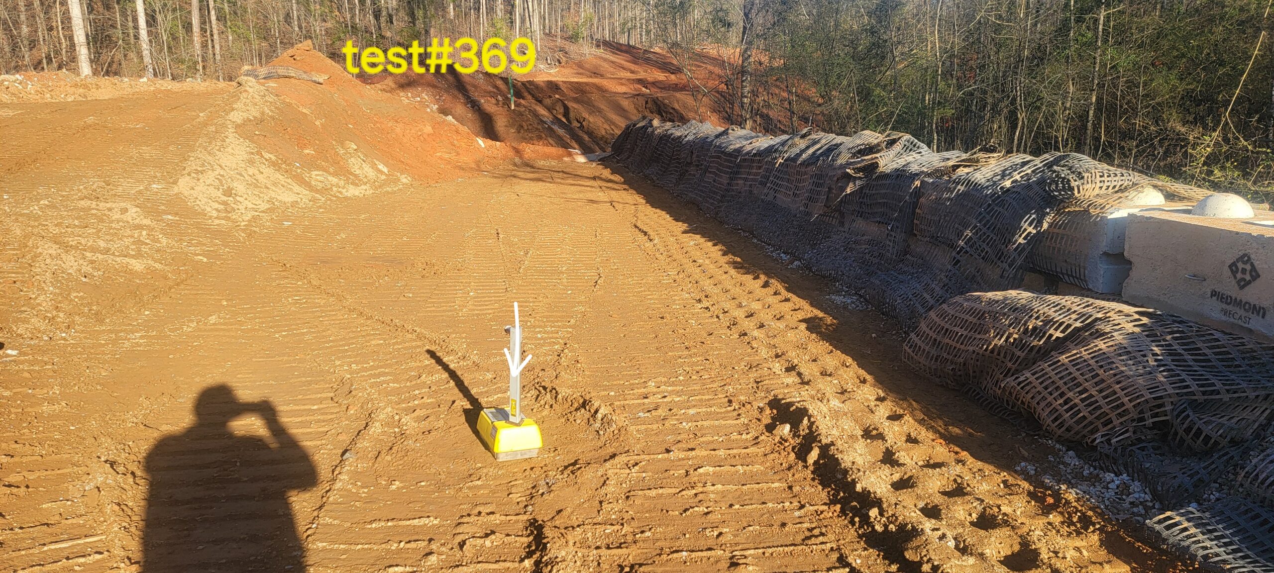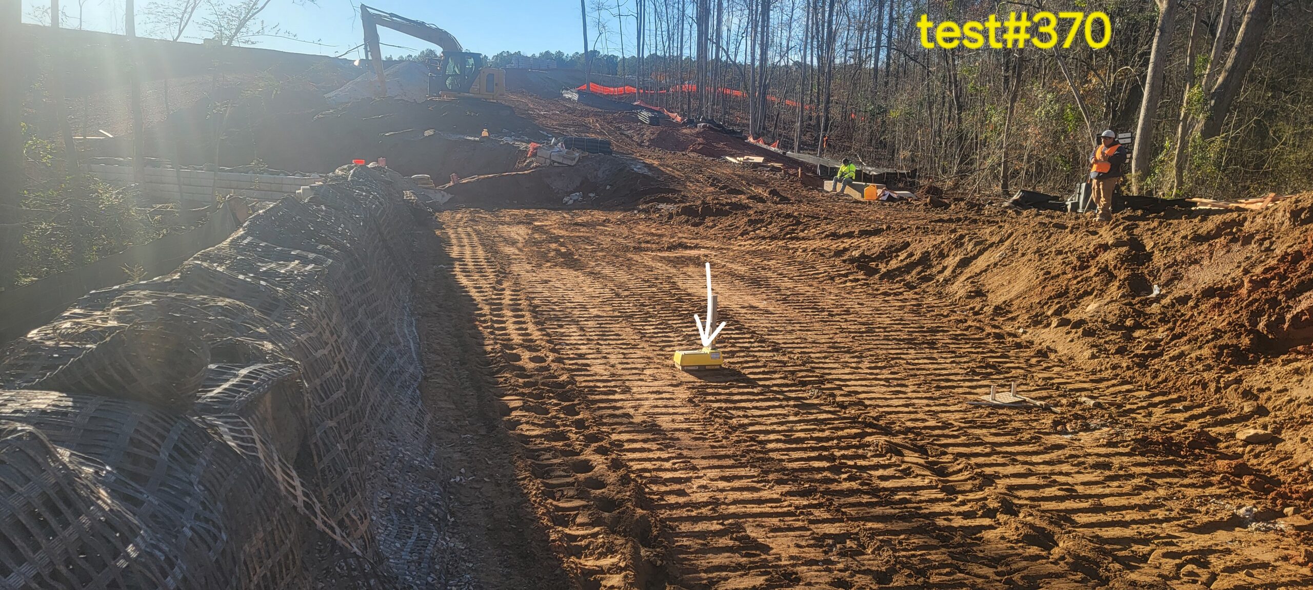 - At the time of arrival, our representative observed that work was in progress with 6″ lifts being placed for retaining wall #2 backfill and compacted using a 9-ton Sheep feet and trench compaction equipment and at the time of arrival, Compaction testing was performed using a Troxler nuclear density gauge, along with general probing using a 3/8″ diameter probe rod.