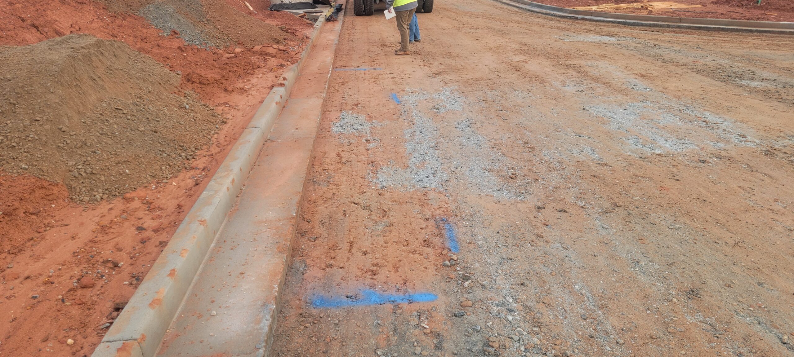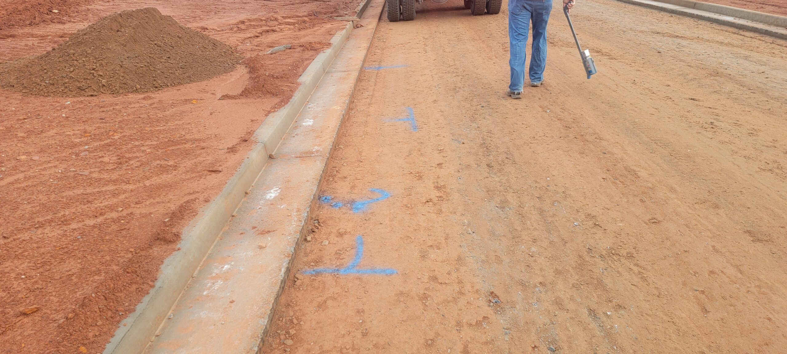 • Proof-Roll Observation: Conducted on the CTB road (locations shown in pictures). Some yielding and deflection were noted in specific areas. Locations shown in pictures (13’x2.5′) (14’x2.5′) (18’x2.5′) (12×2.5)