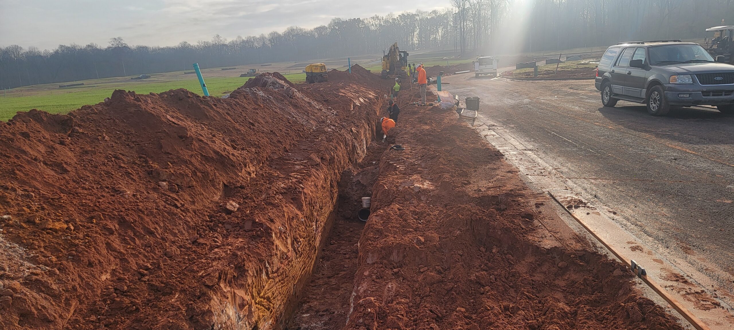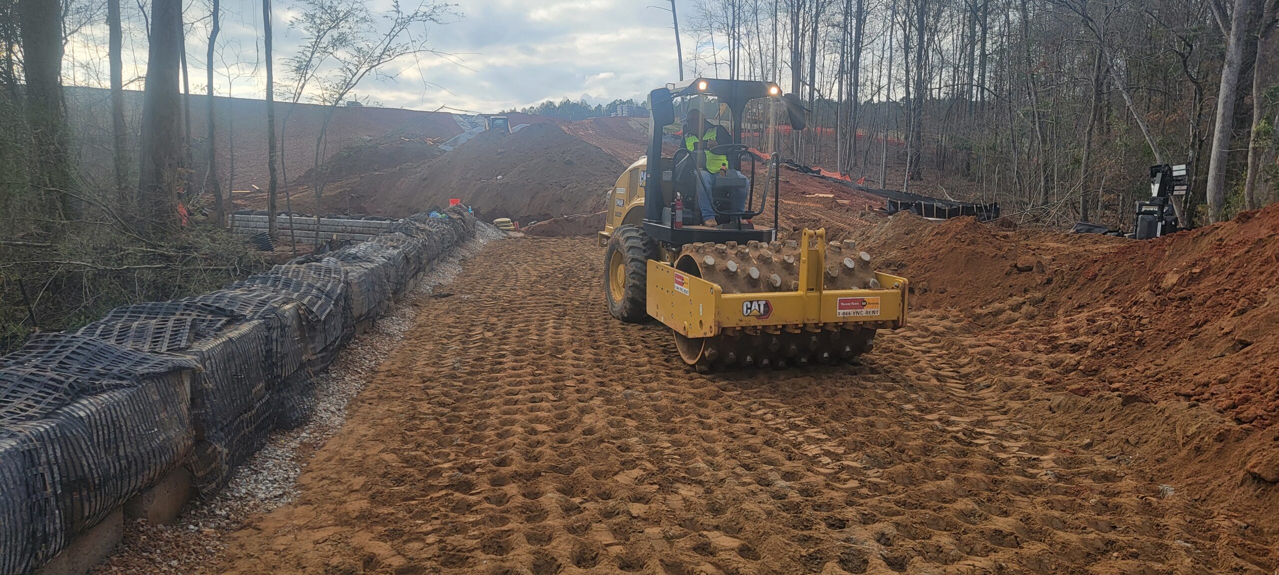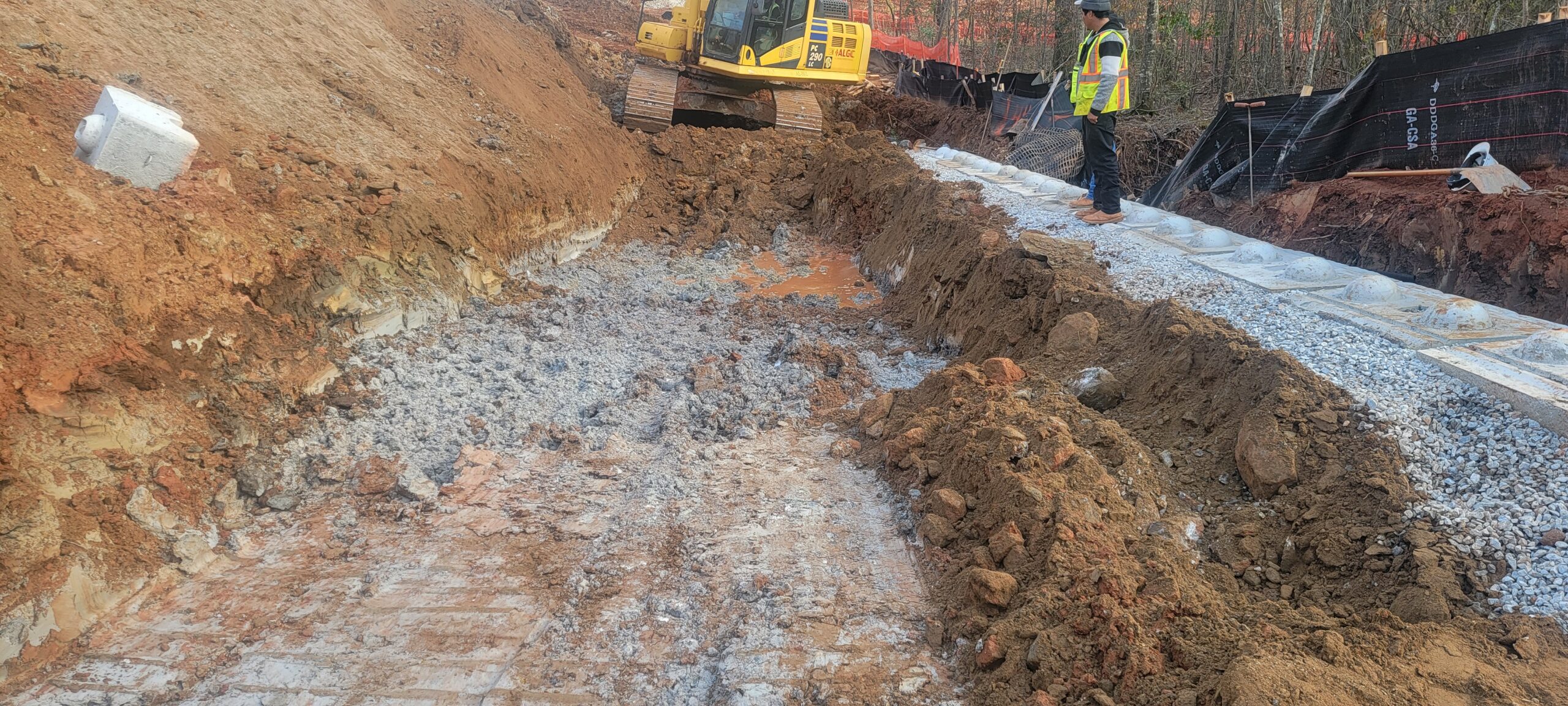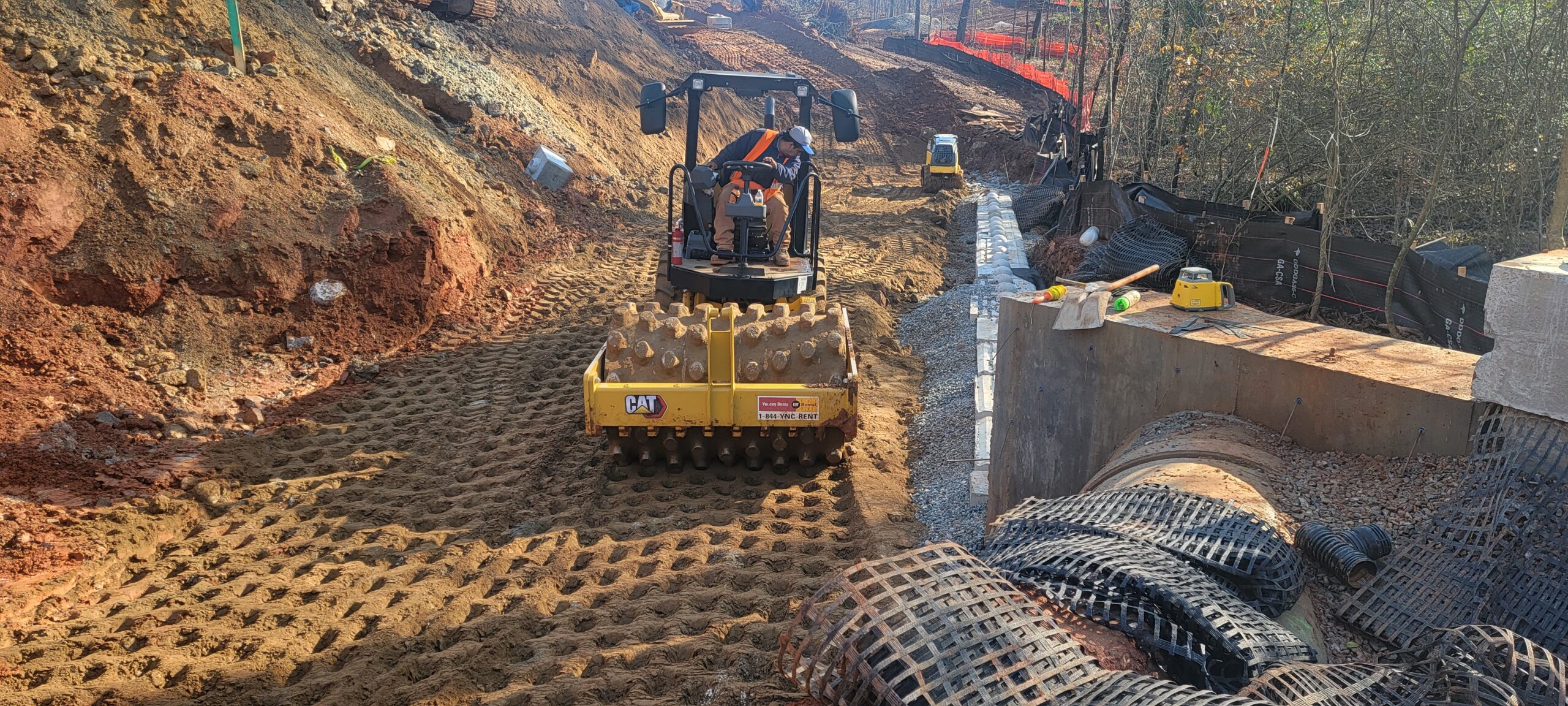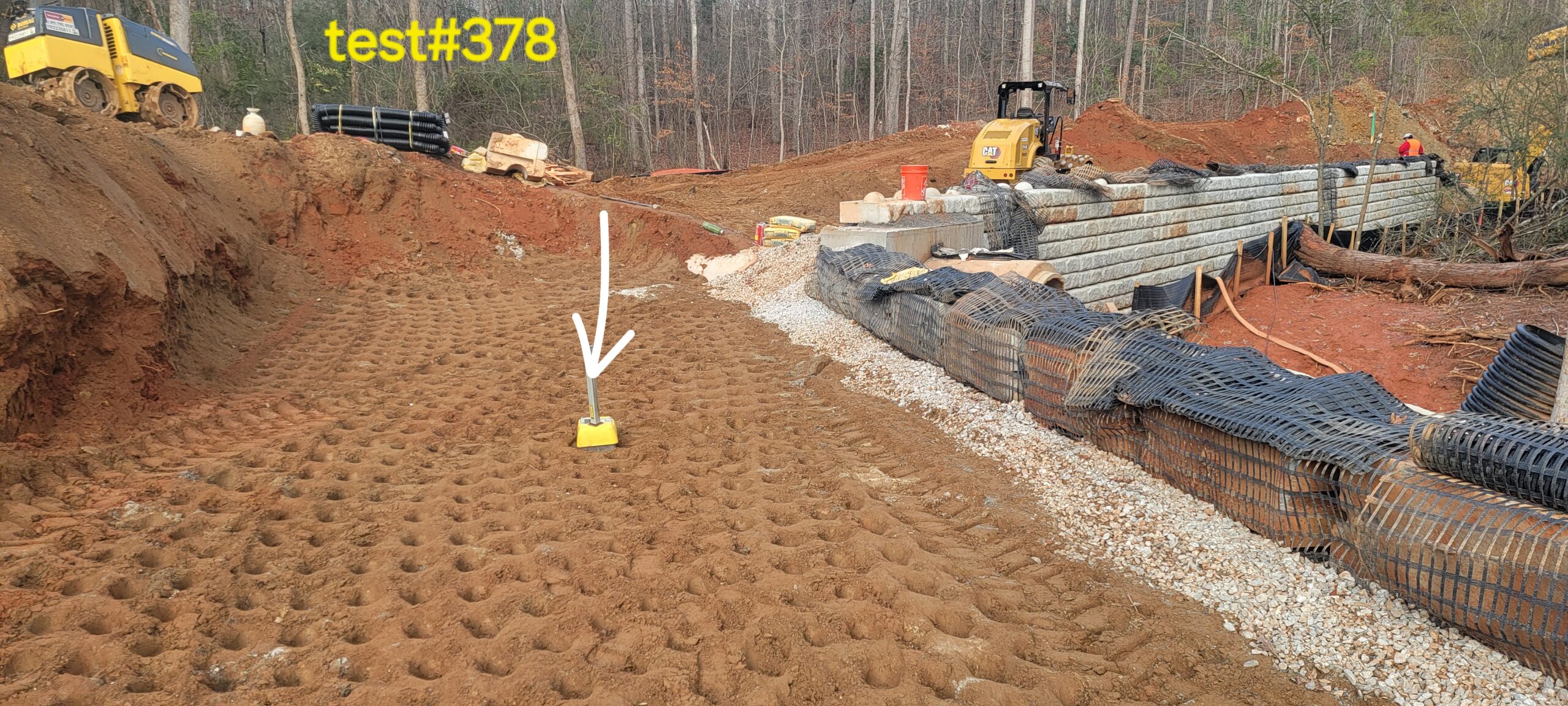 • Backfill lifts were placed 8 inches thick and compacted with a 9-ton pad-foot and trench compactor.