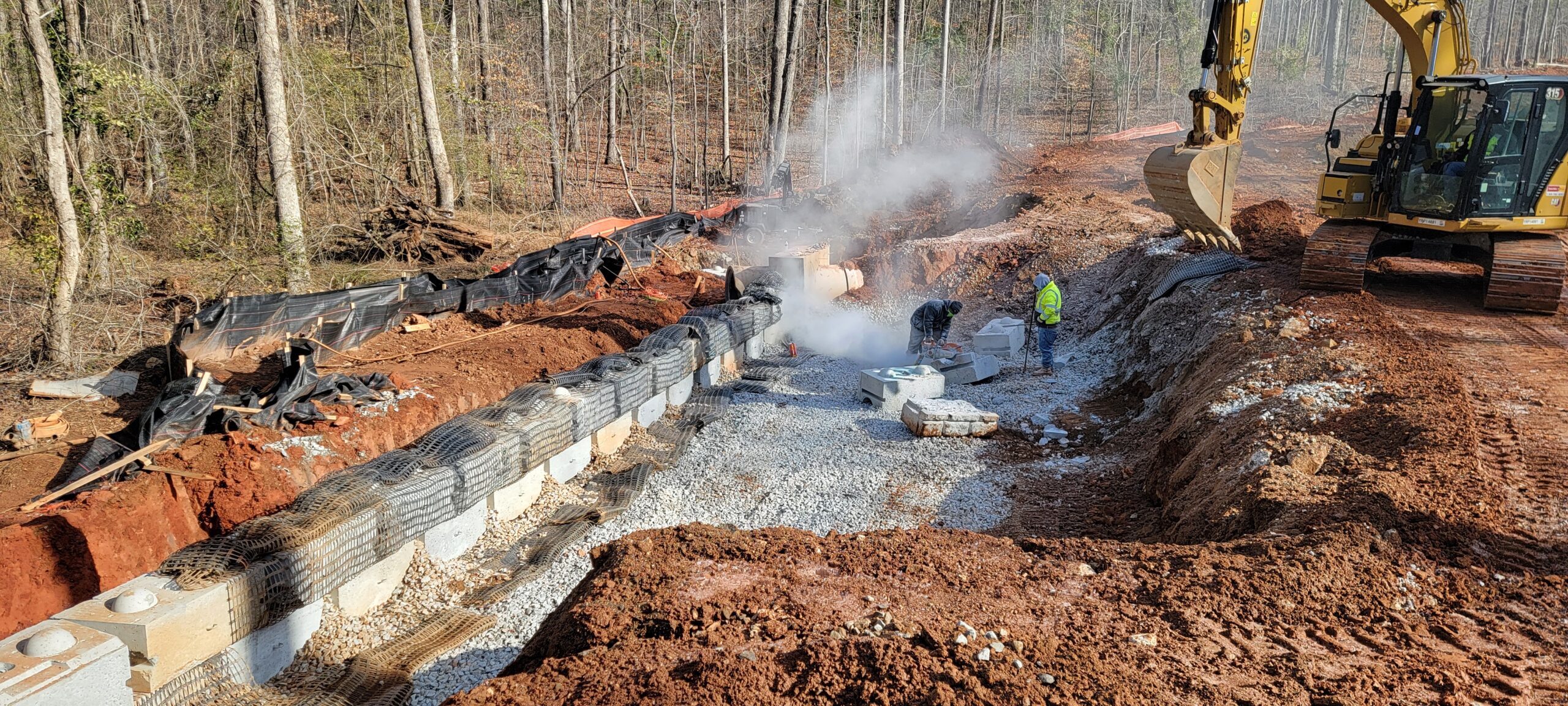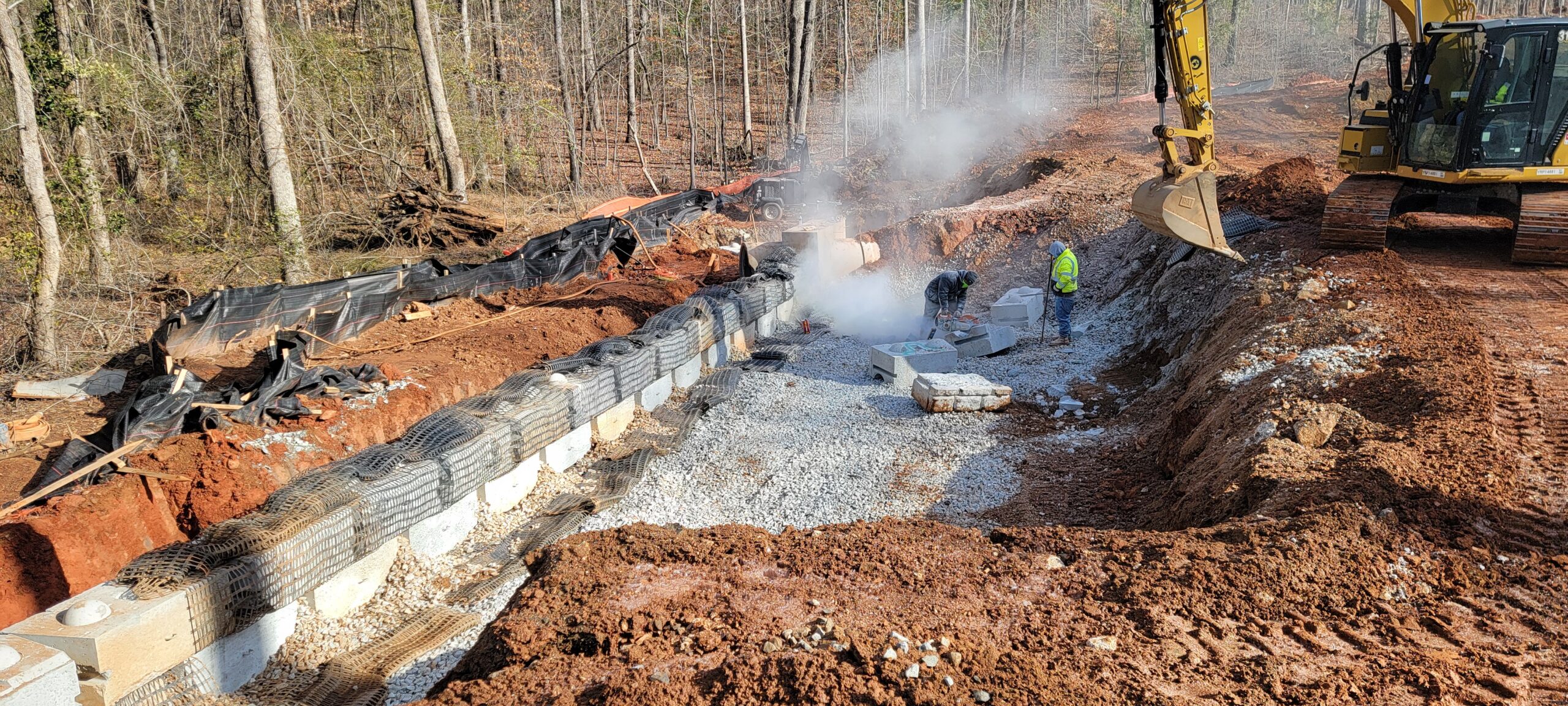 - Placement of Geo-Grid for wall construction integrity.