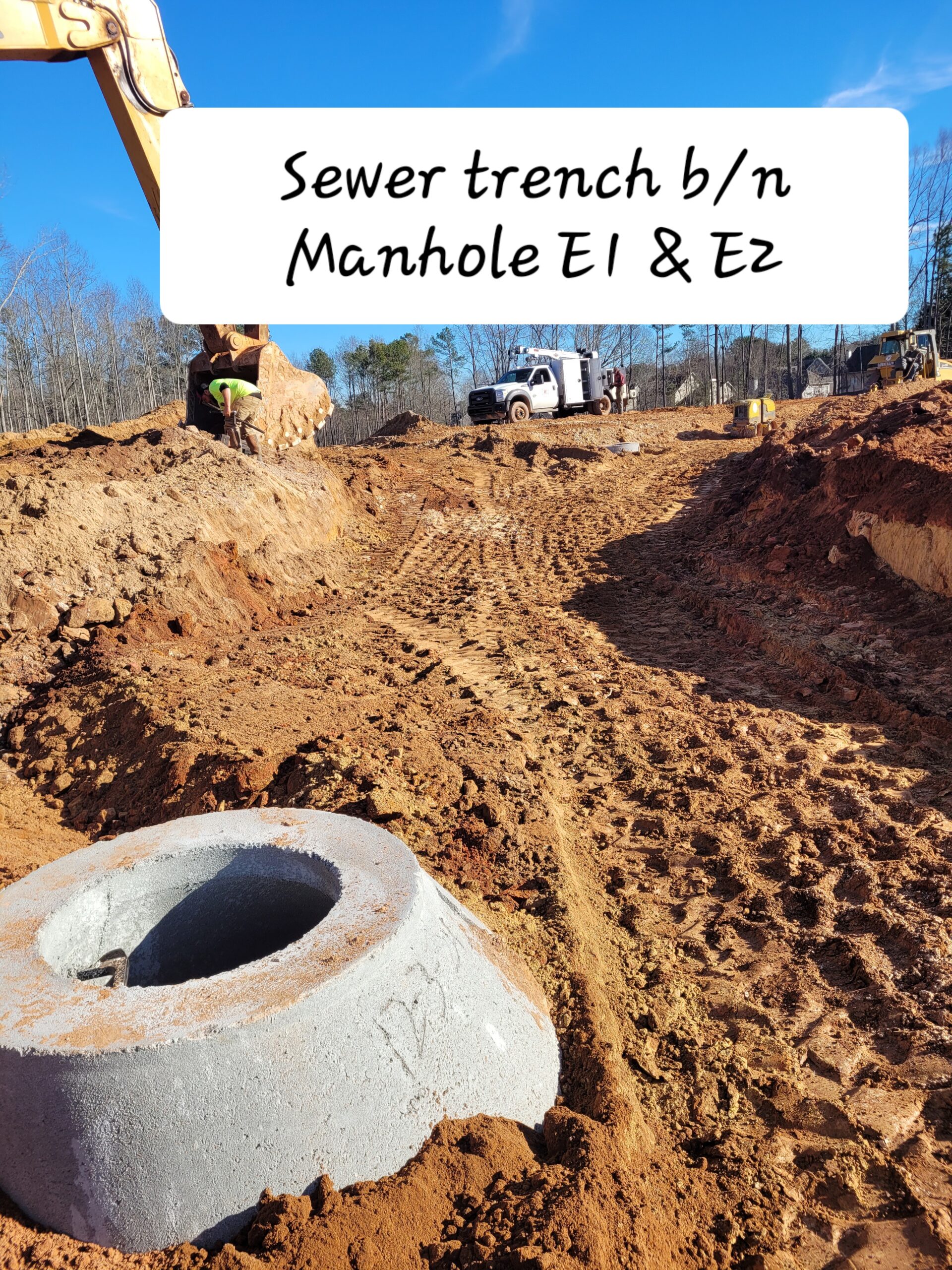 Backfilling of the sewer line between Manholes E1 and E2 continued today.