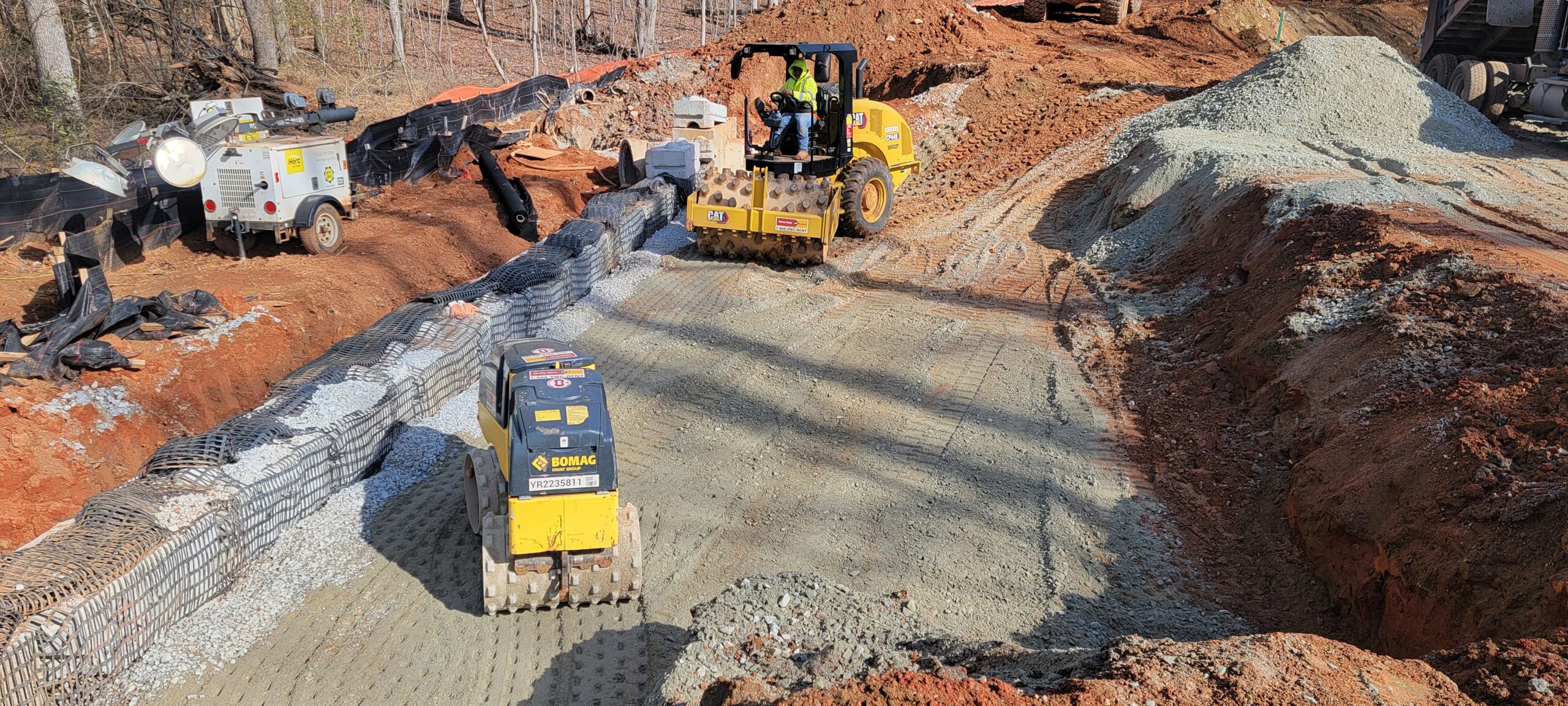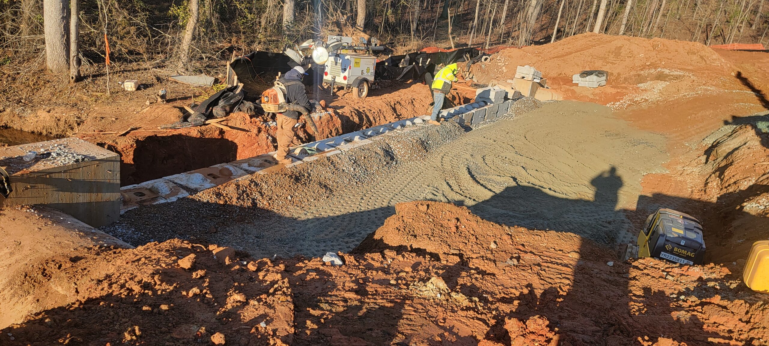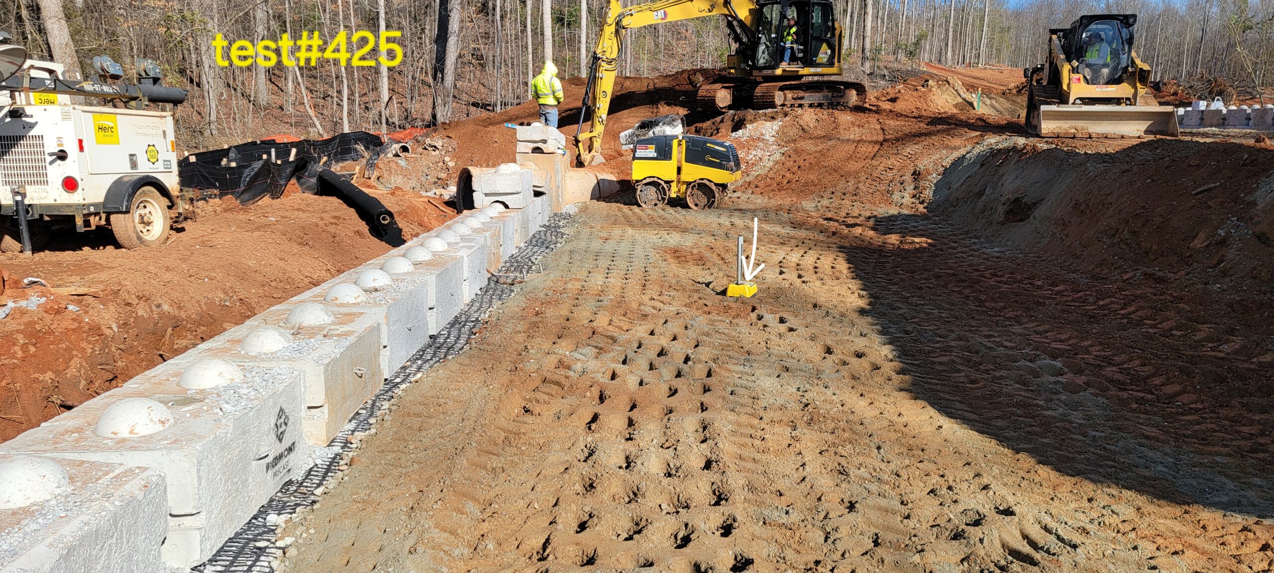 • At the time of arrival, for retaining wall, work was being conducted with 9-inch lifts placed and compacted using 9-ton Smooth drum and trench compaction equipment.