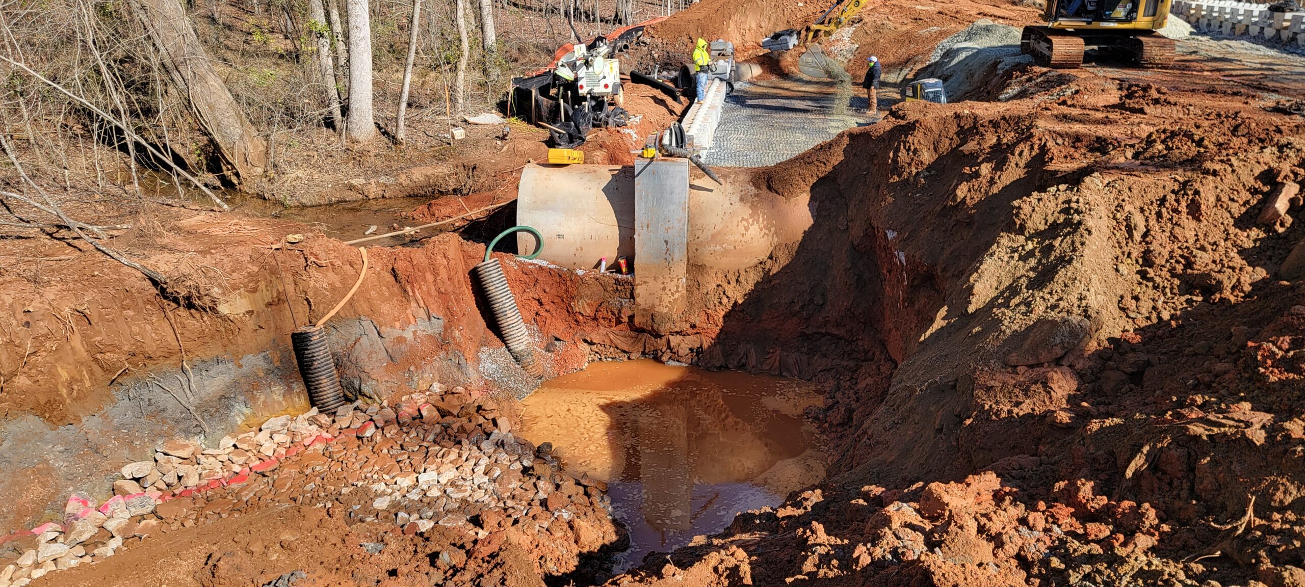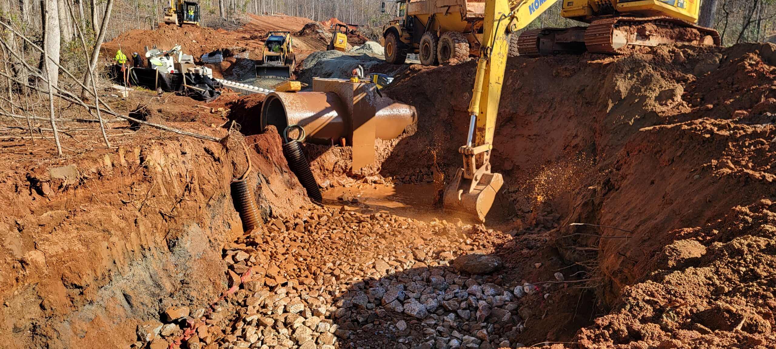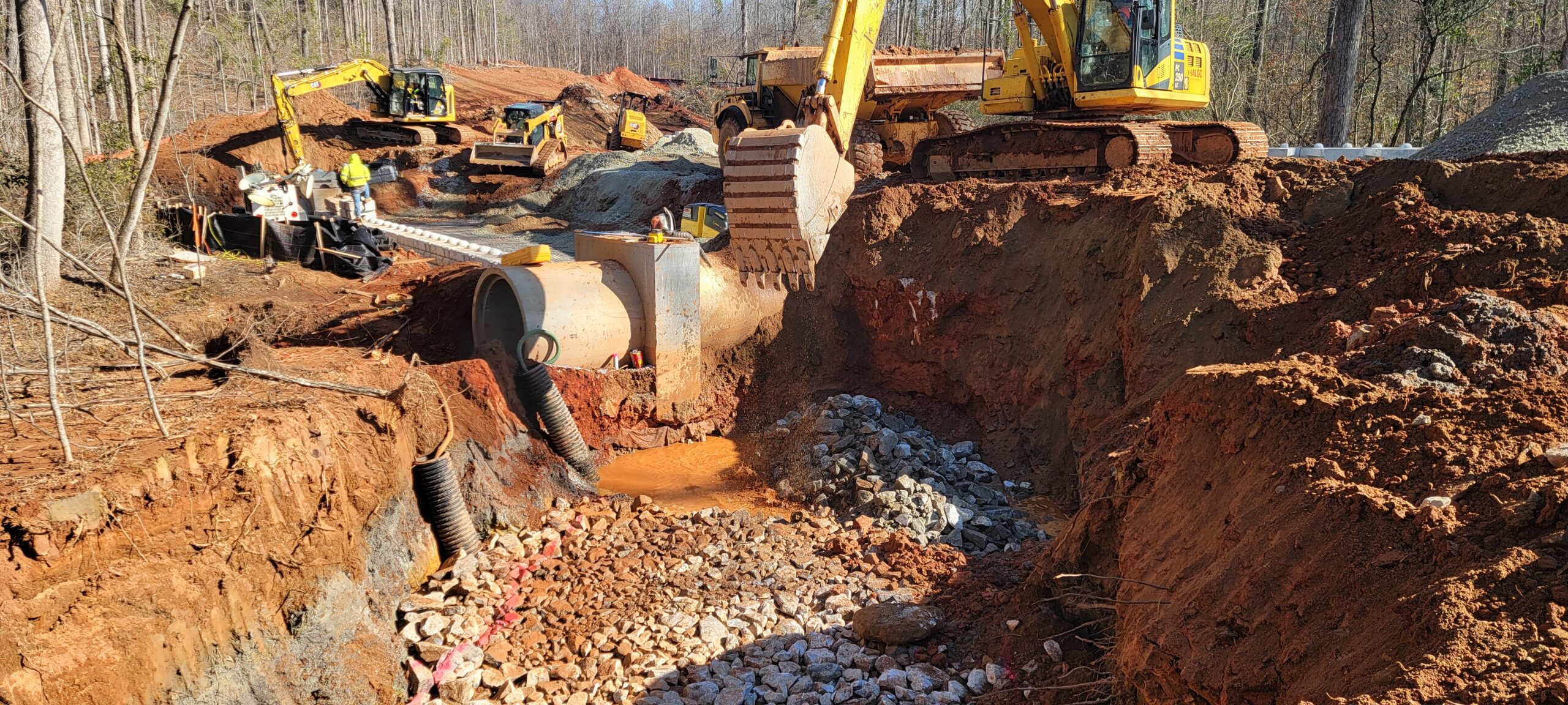 • The placement of ride rock blocks was in progress.