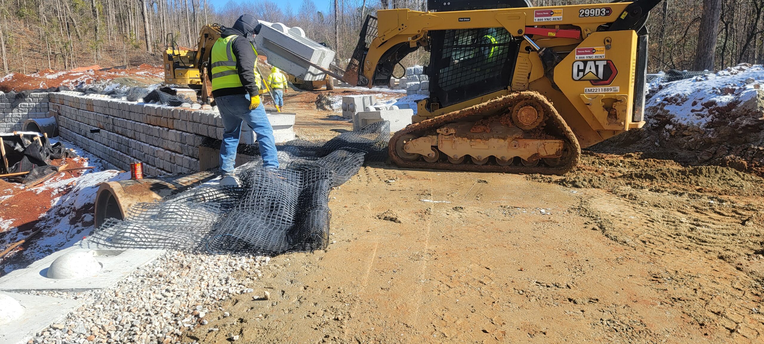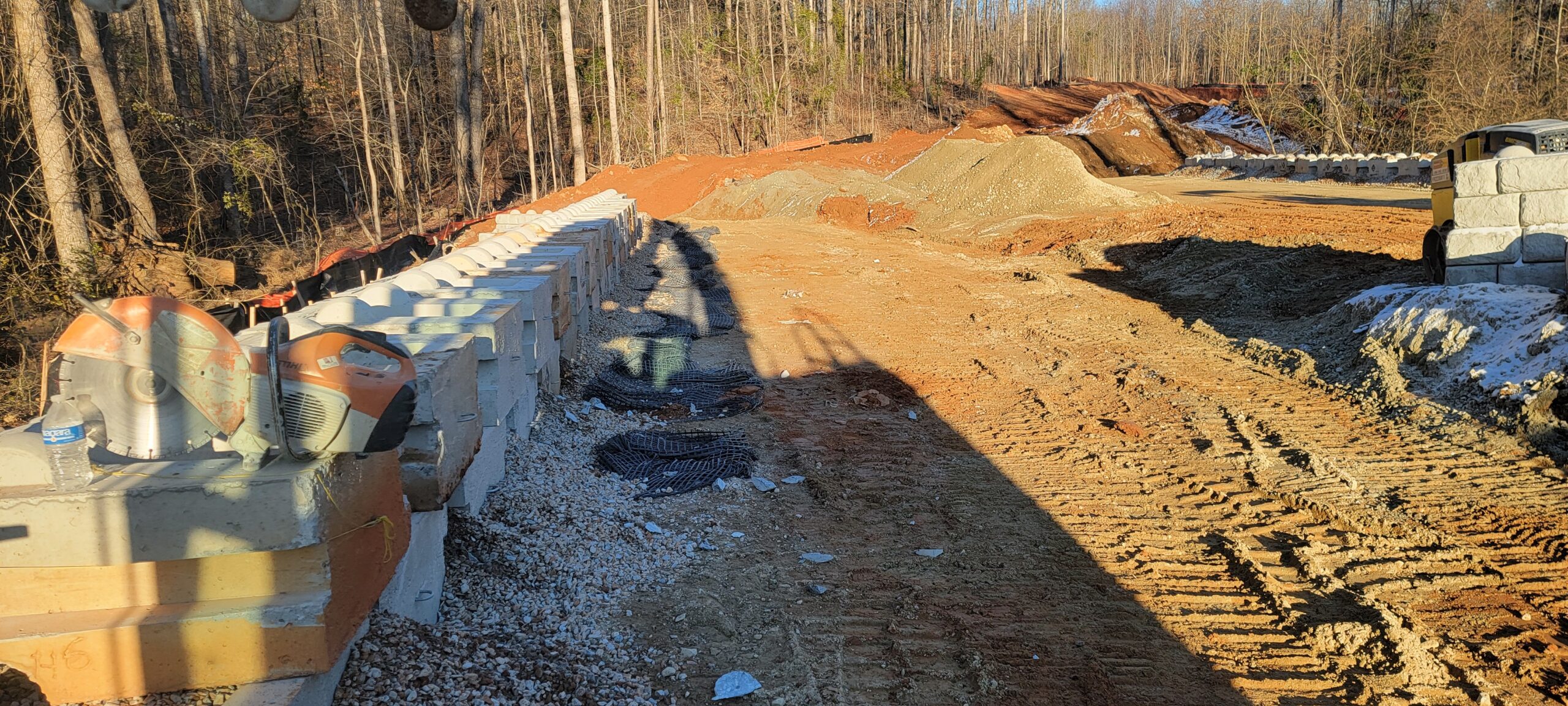 - Geo-grid reinforcement was installed with every course of the wall.