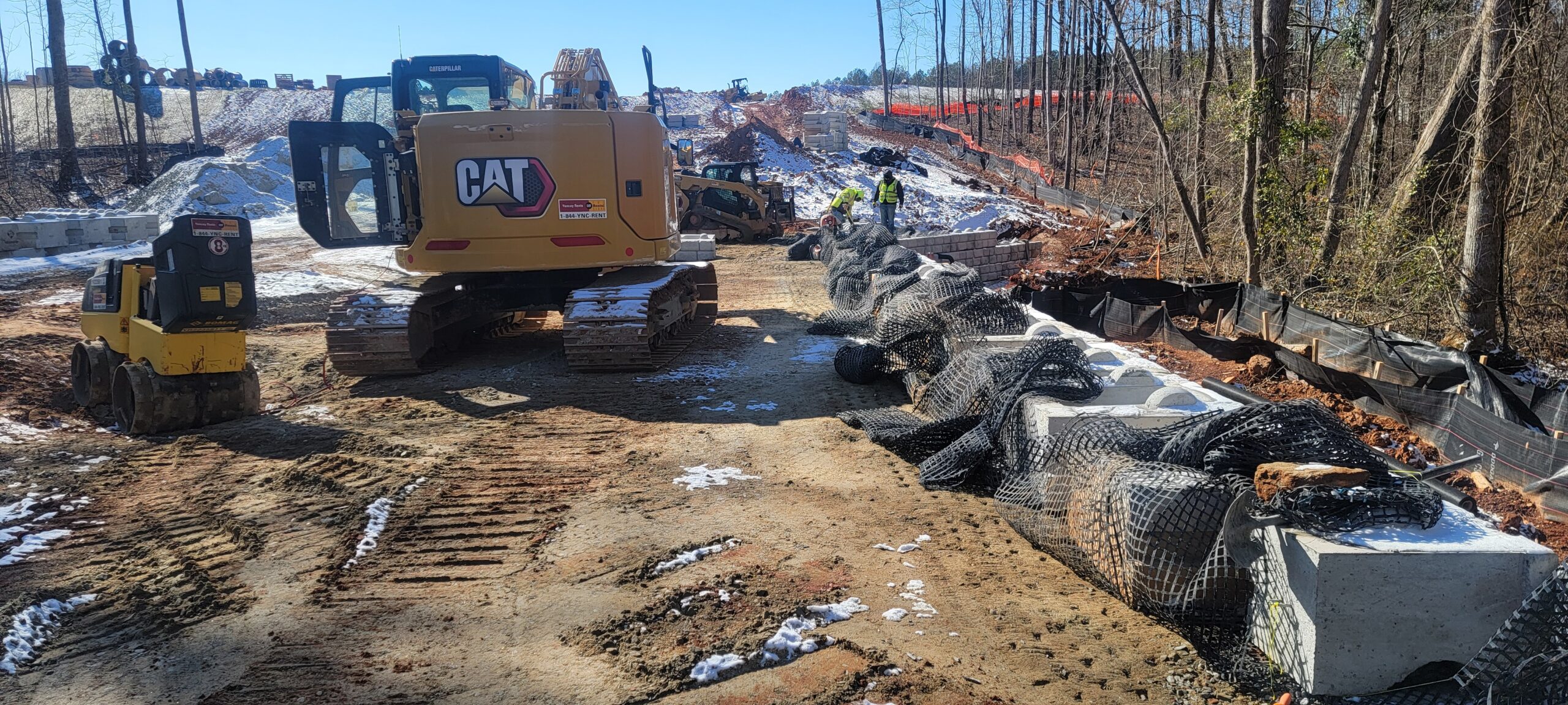 - The installation and placement and compaction of GAB for retaining wall #1 was in progress.
