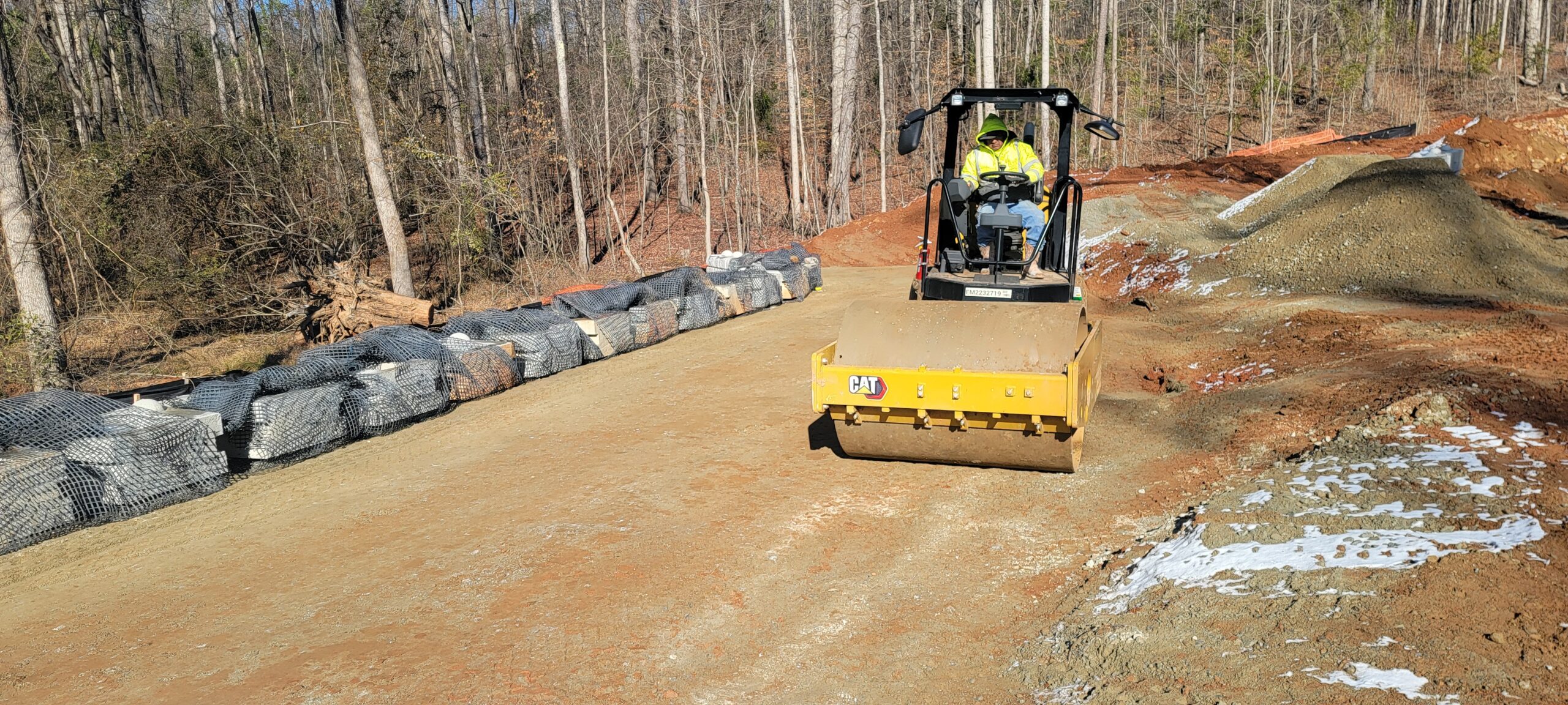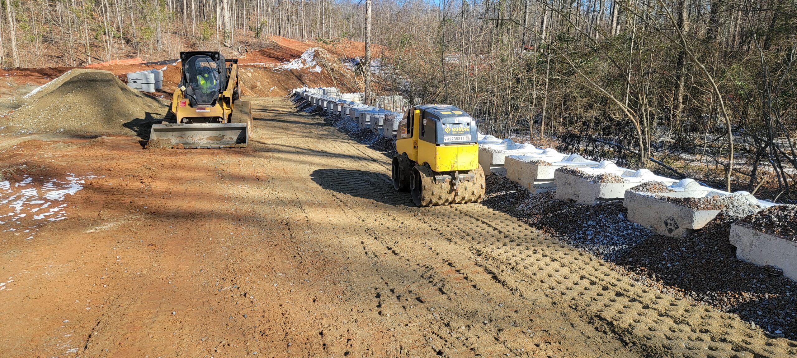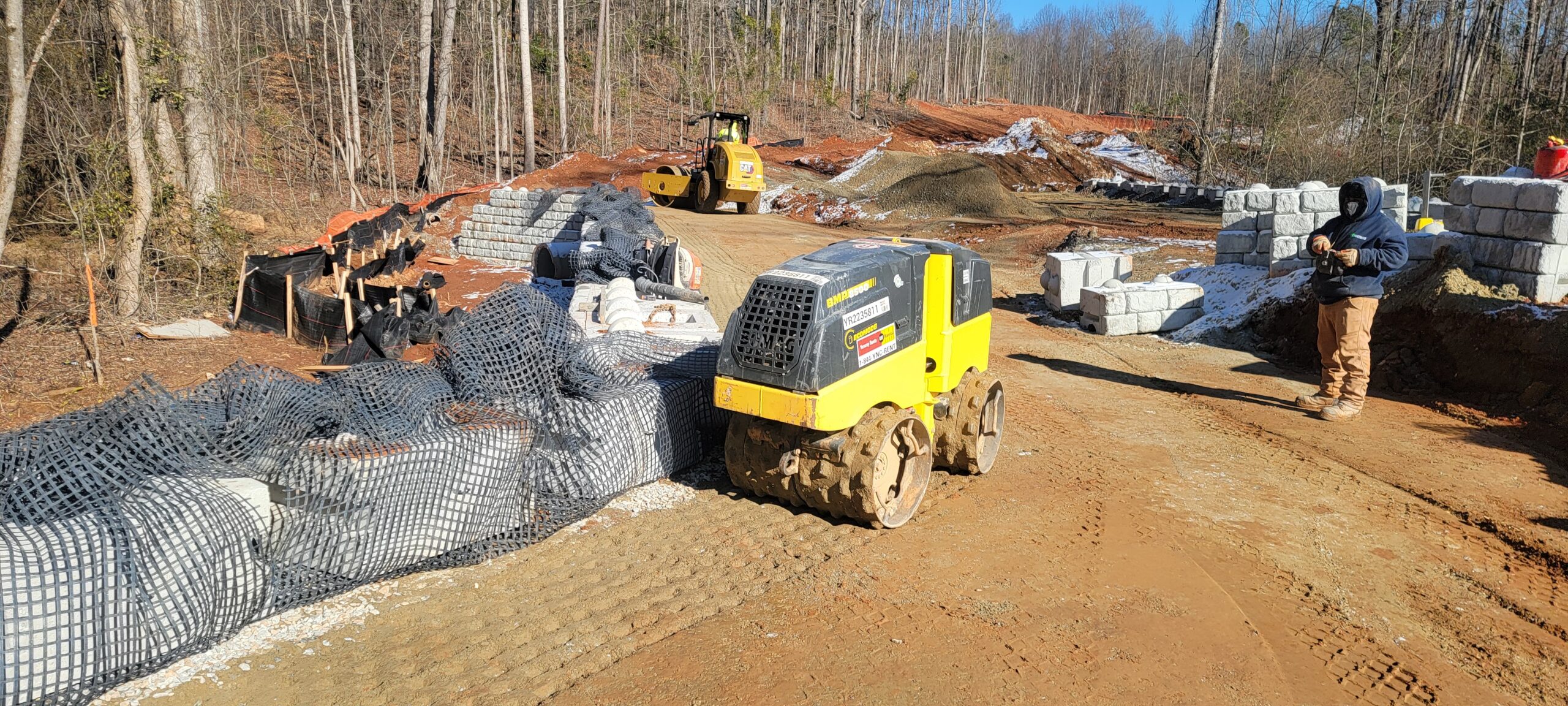 - At the time of arrival, for retaining wall, work was being conducted with 9-inch lifts placed and compacted using 9-ton smooth drum and trench compaction equipment.