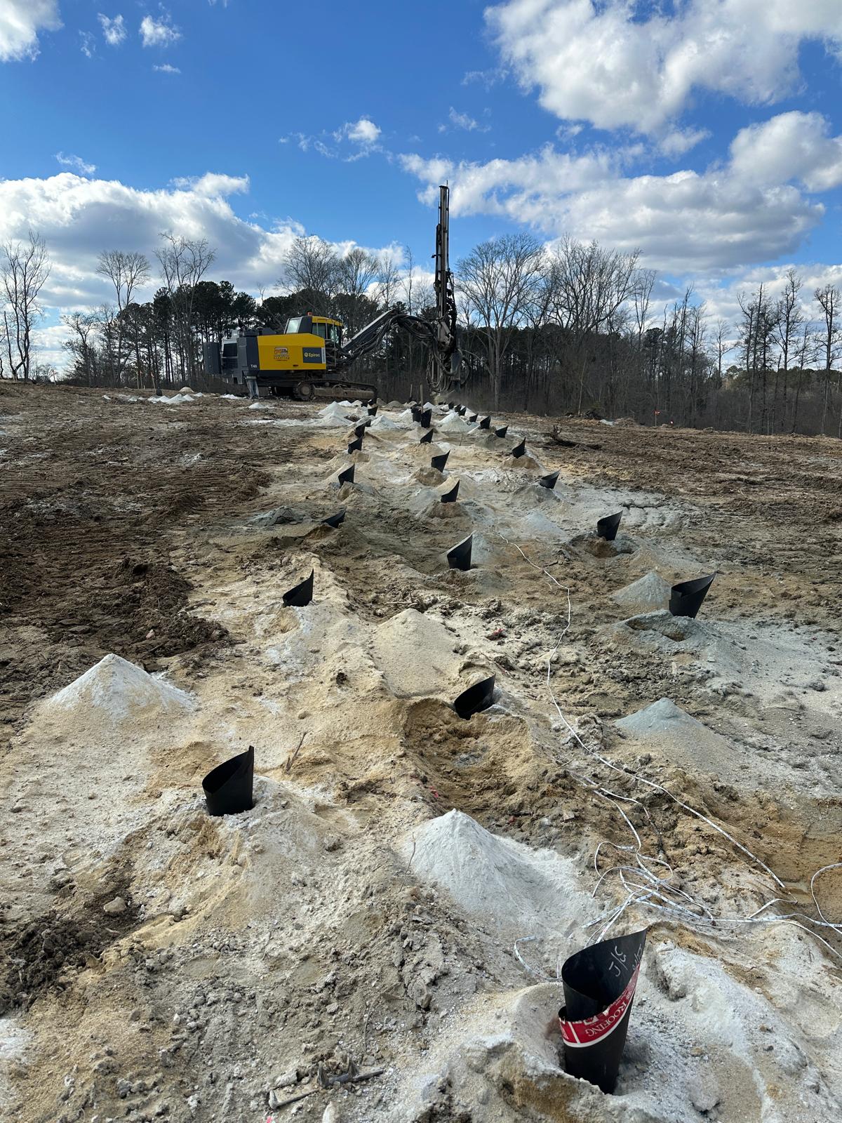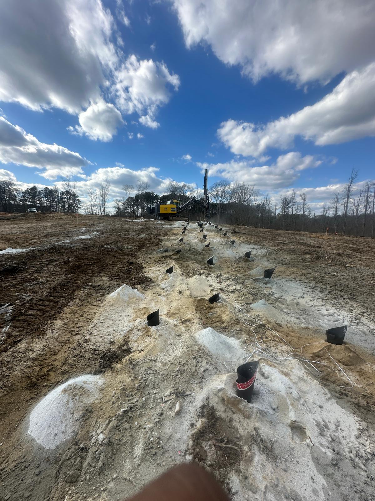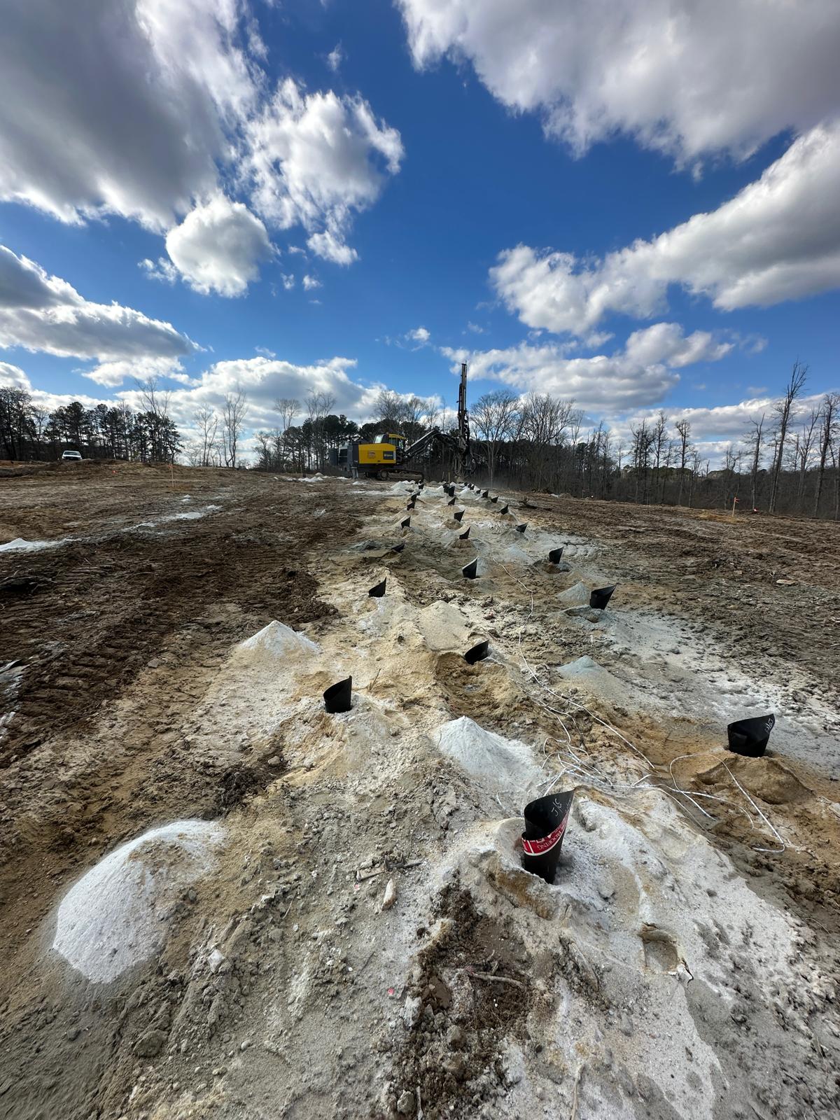 The drilling operation began at the southern end of Lot 48, where blasting holes had previously been completed. The crew proceeded westward until reaching the start of the lateral section, specifically Lateral 124, south of Lot 45. Throughout the process, no significant issues were encountered, and the crew did not face any notable groundwater challenges. Each hole was carefully inspected after drilling to ensure the correct depth was achieved. Drilling in this area was performed with rows spaced approximately 8 feet apart and 7 feet between drilling locations within each row. The operation progressed smoothly with no major complications.