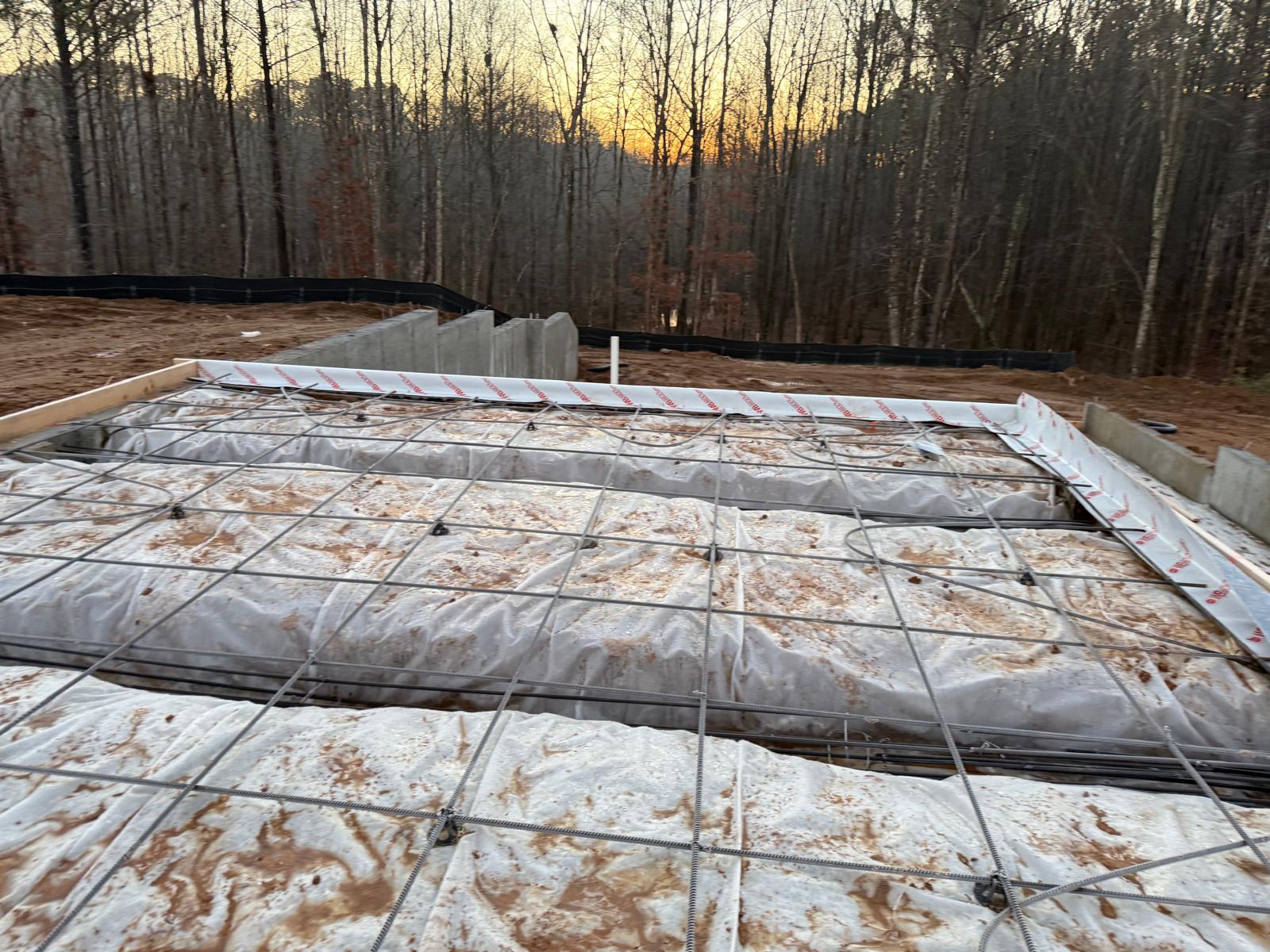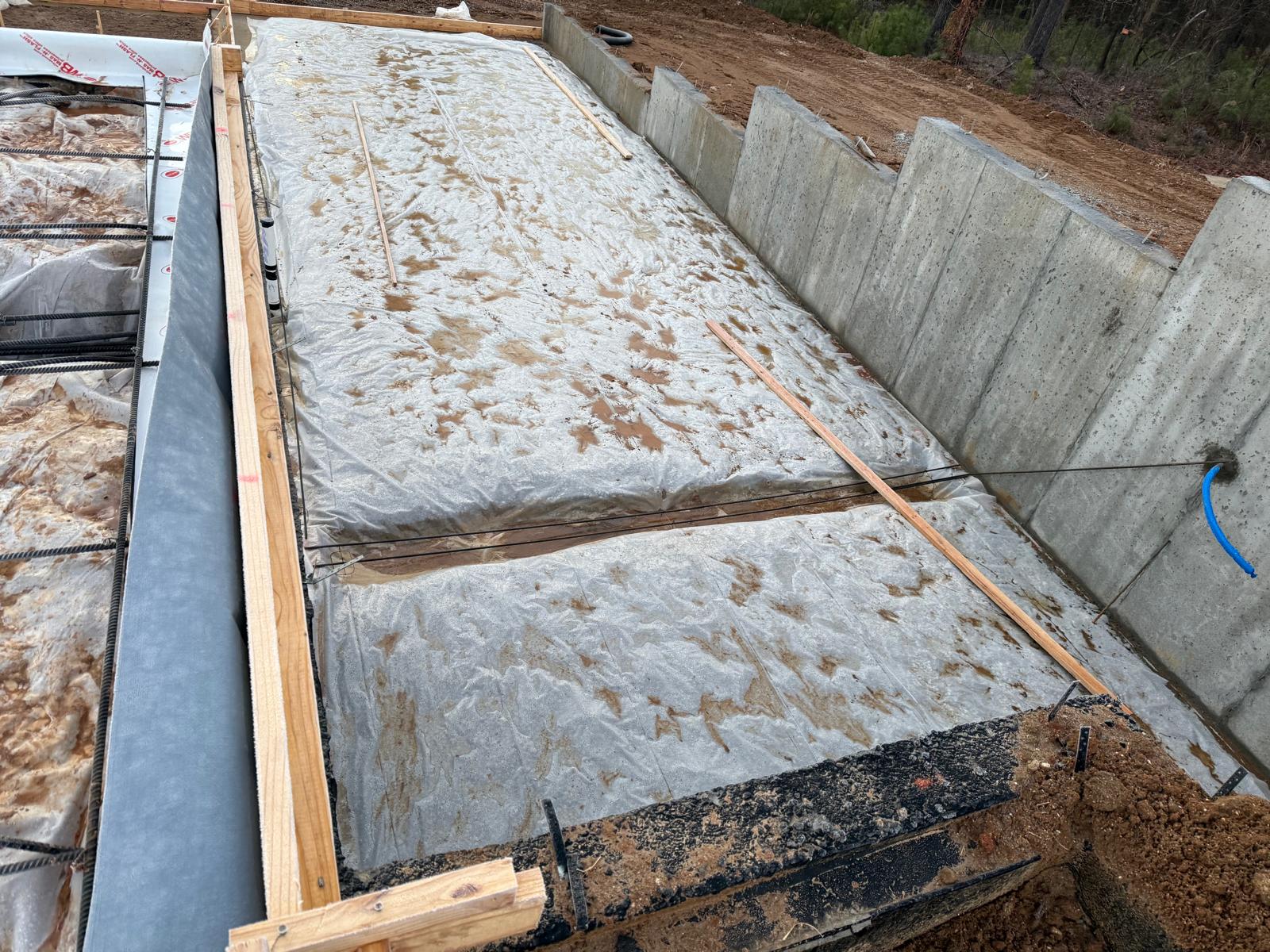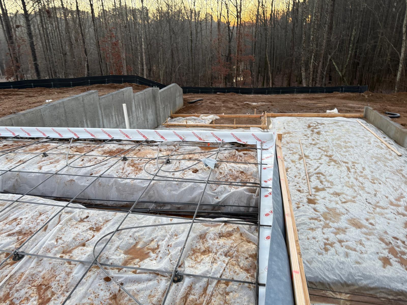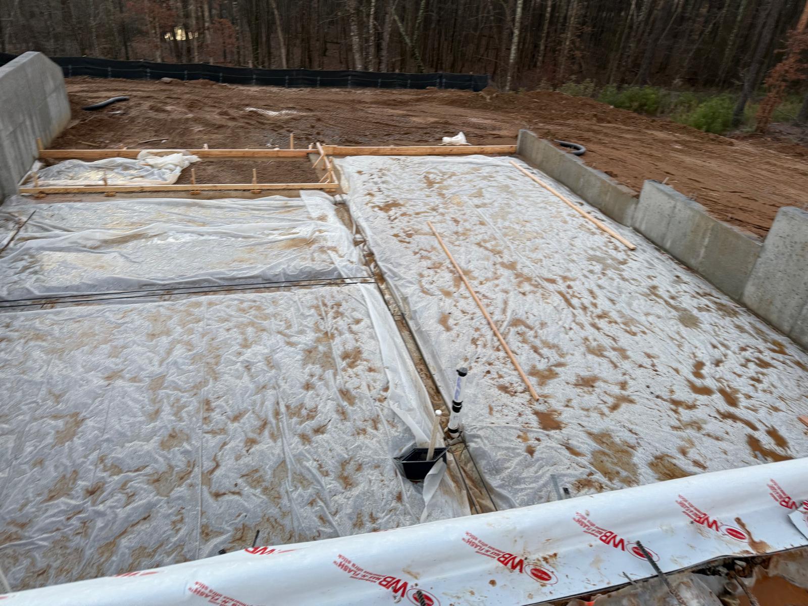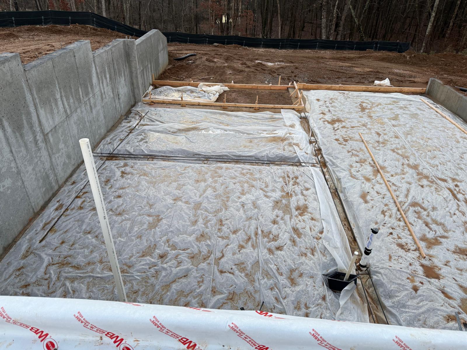 - The basement slab subgrade inspection has been completed, and the reinforcement has been confirmed to meet job specifications for size, spacing and quantity. Plastic sheeting has been laid over the basement floor. During the inspection of the tie beams, ice and mud were observed. Our representative recommended the removal of these deleterious materials prior to the placement of concrete.
