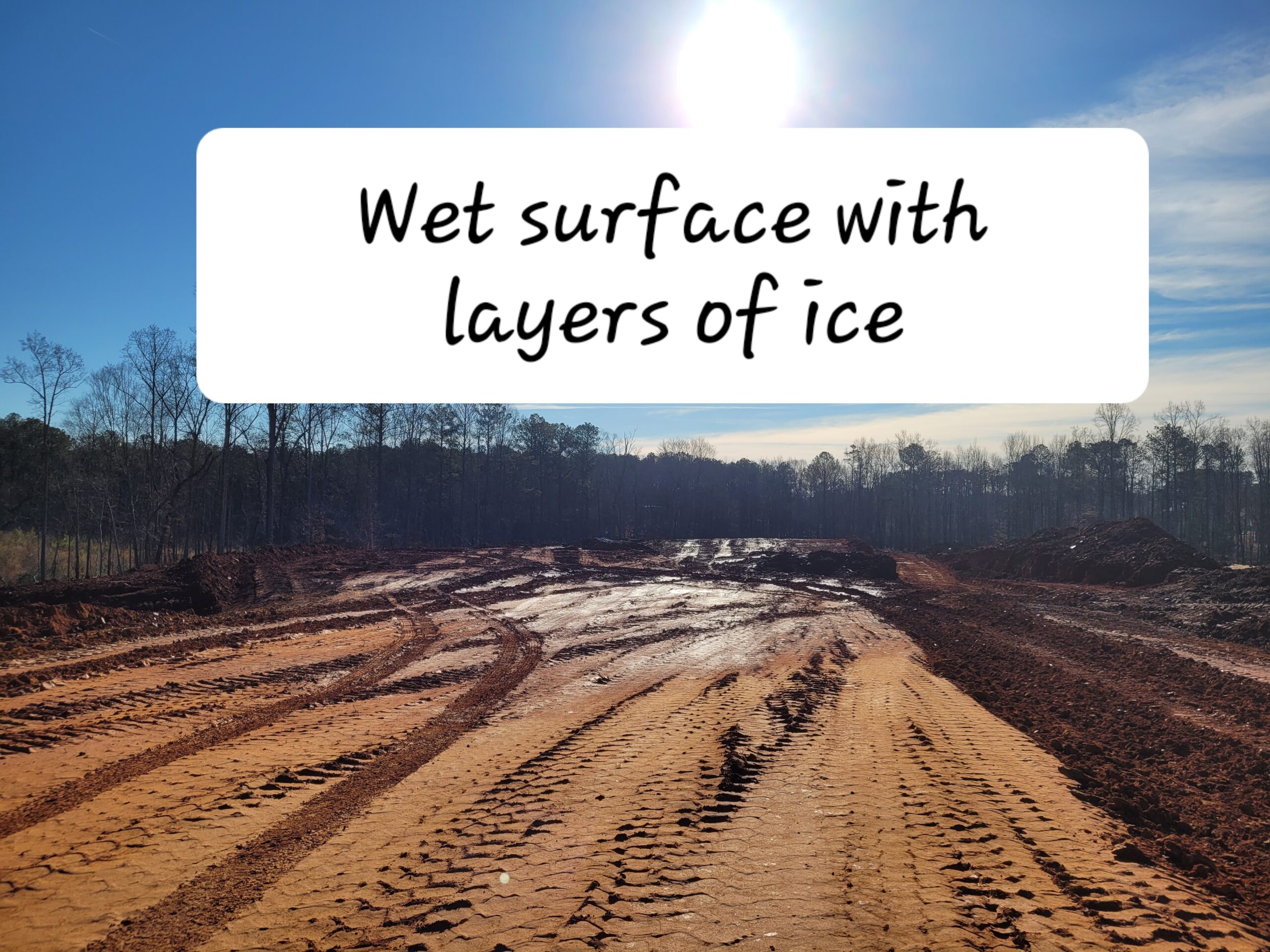 Picture depicting muddy and shining surface due to ice layer
