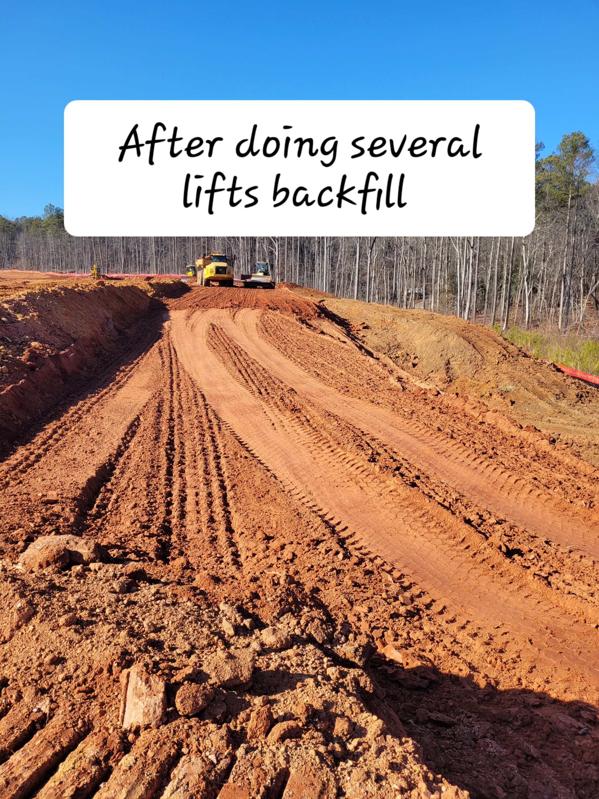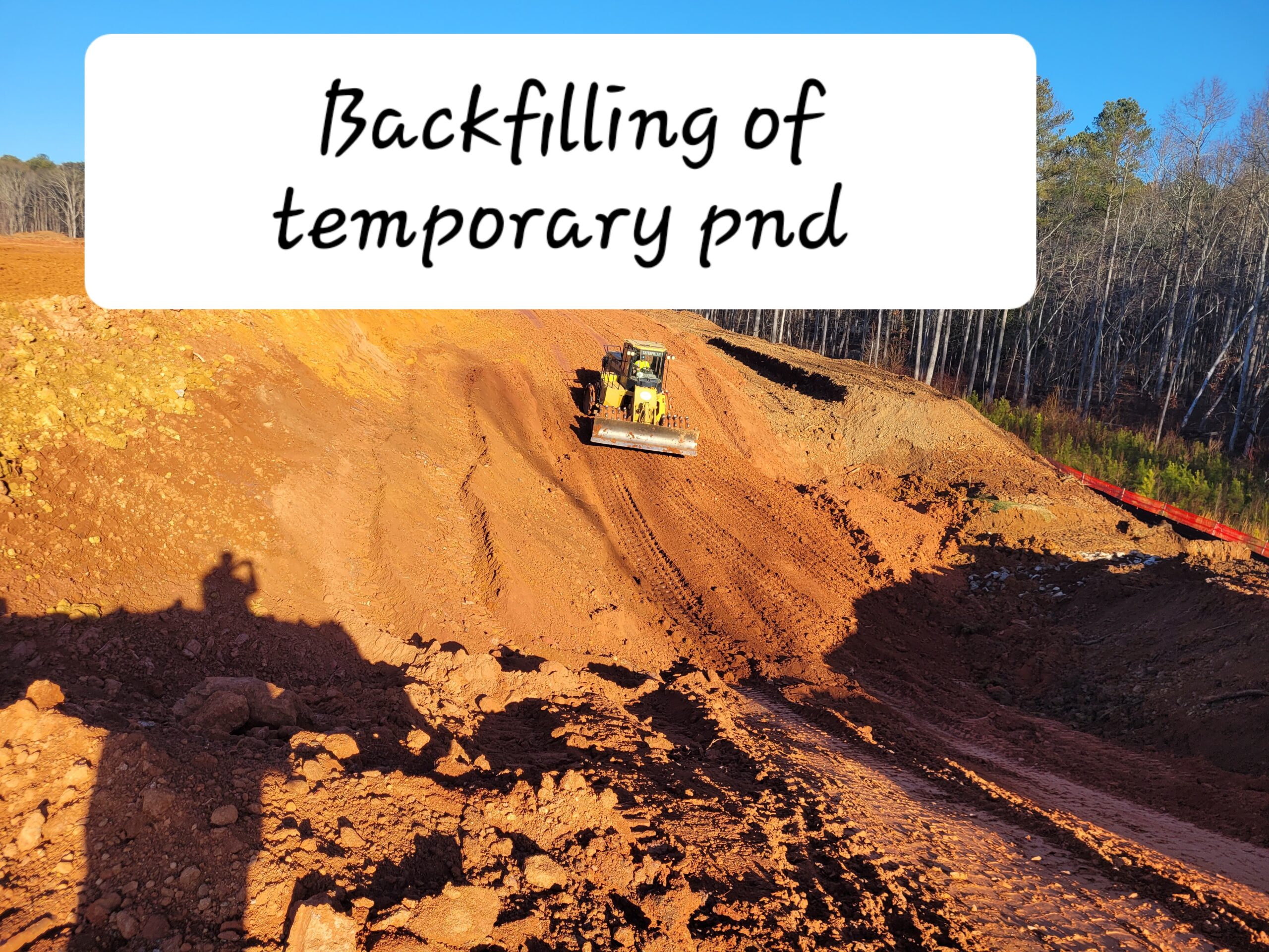 Fill was spread by a 61Pxi Komatsu Bulldozer for a thin strip behind Lots #28 and #29, specifically on the temporary pond at the back of Lot #30.