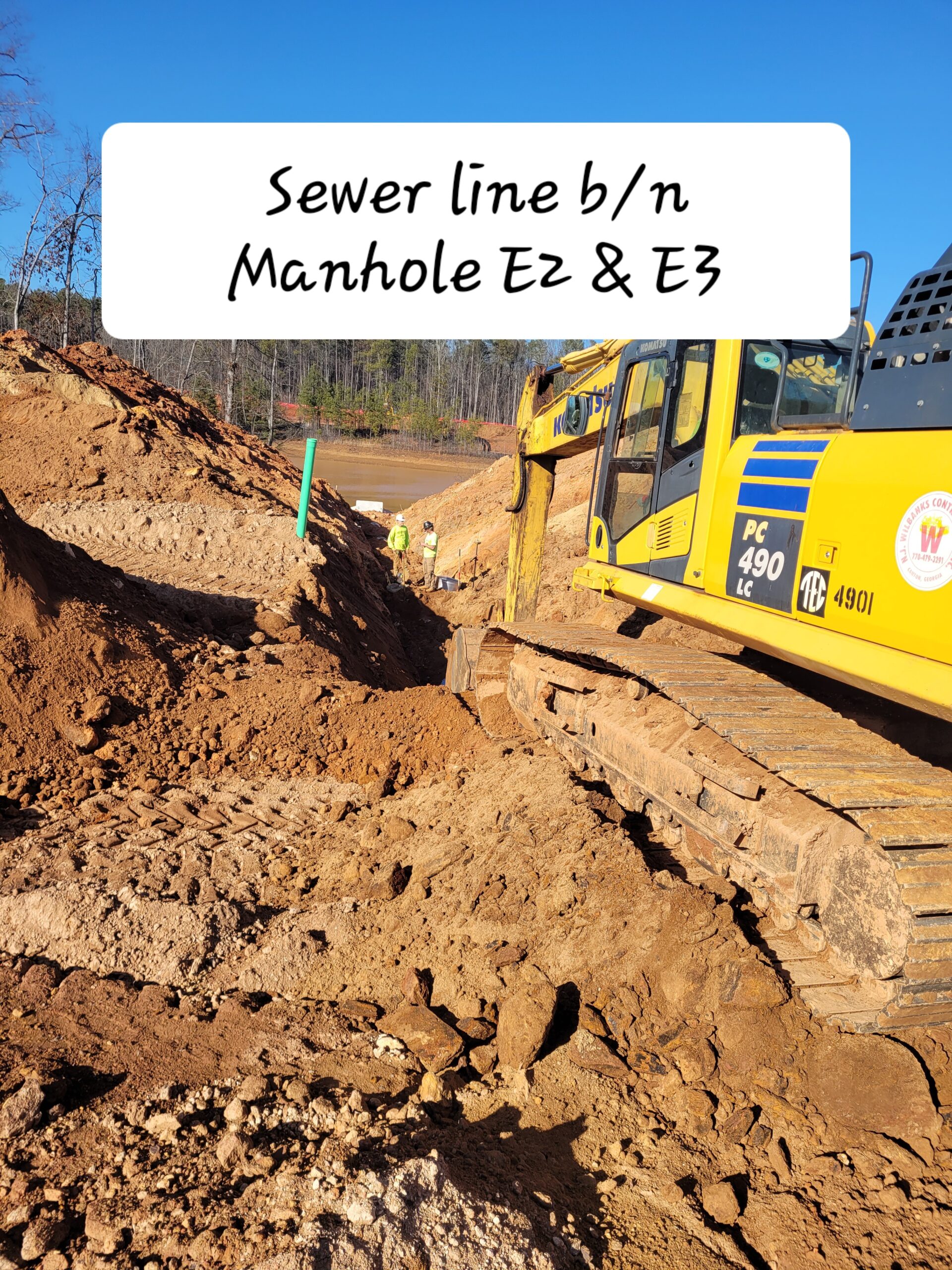 Storm line between Manhole E1 & E2 was excavated and installed. Sewer line between E2 & E3 was installed.  Both lines will be backfilled tomorrow.